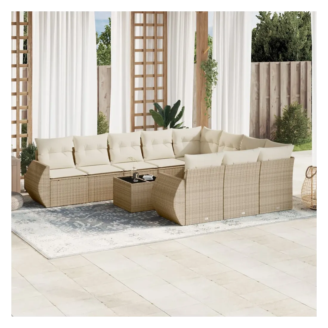 Salon de jardin 11 pcs avec coussins beige résine tressée
