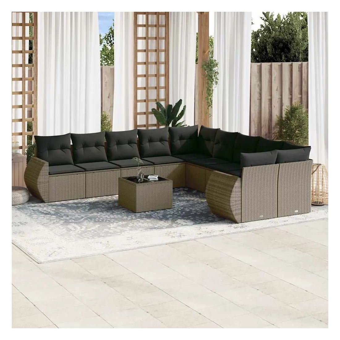 Cet ensemble de canapés de jardin est le complément parfait de votre arrière-cour, terrasse ou patio, offrant un espace confortable et accueillant pour discuter avec la famille et les amis ou simplement se détendre et profiter de l'extérieur. Matériau durable : la résine tressée, également connue sous le nom de poly rotin, est un matériau synthétique solide et nécessitant peu d'entretien qui ressemble au rotin naturel. Il est léger, facile à nettoyer et couramment utilisé pour les meubles d'extérieur en raison de sa durabilité et de ses propriétés de résistance aux intempéries.Dessus en verre : le dessus de la table d'extérieur est fabriqué en verre trempé solide et durable, ce qui le rend facile à nettoyer avec un chiffon humide et ajoute une touche d'élégance à votre espace extérieur.Expérience d'assise confortable : ce mobilier d'extérieur, doté de coussins épais, offre une expérience d'assise confortable.Housse amovible et lavable : ces coussins de siège sont dotés de housses amovibles pour un lavage et un entretien faciles.Conception modulaire : cet ensemble de meubles d'extérieur a une conception modulaire, ce qui le rend complètement flexible et facile à déplacer, afin que vous puissiez créer un agencement de meubles d'extérieur personnalisé. Bon à savoir :Pour que vos meubles d'extérieur restent beaux, nous vous recommandons de les protéger avec une housse imperméable.