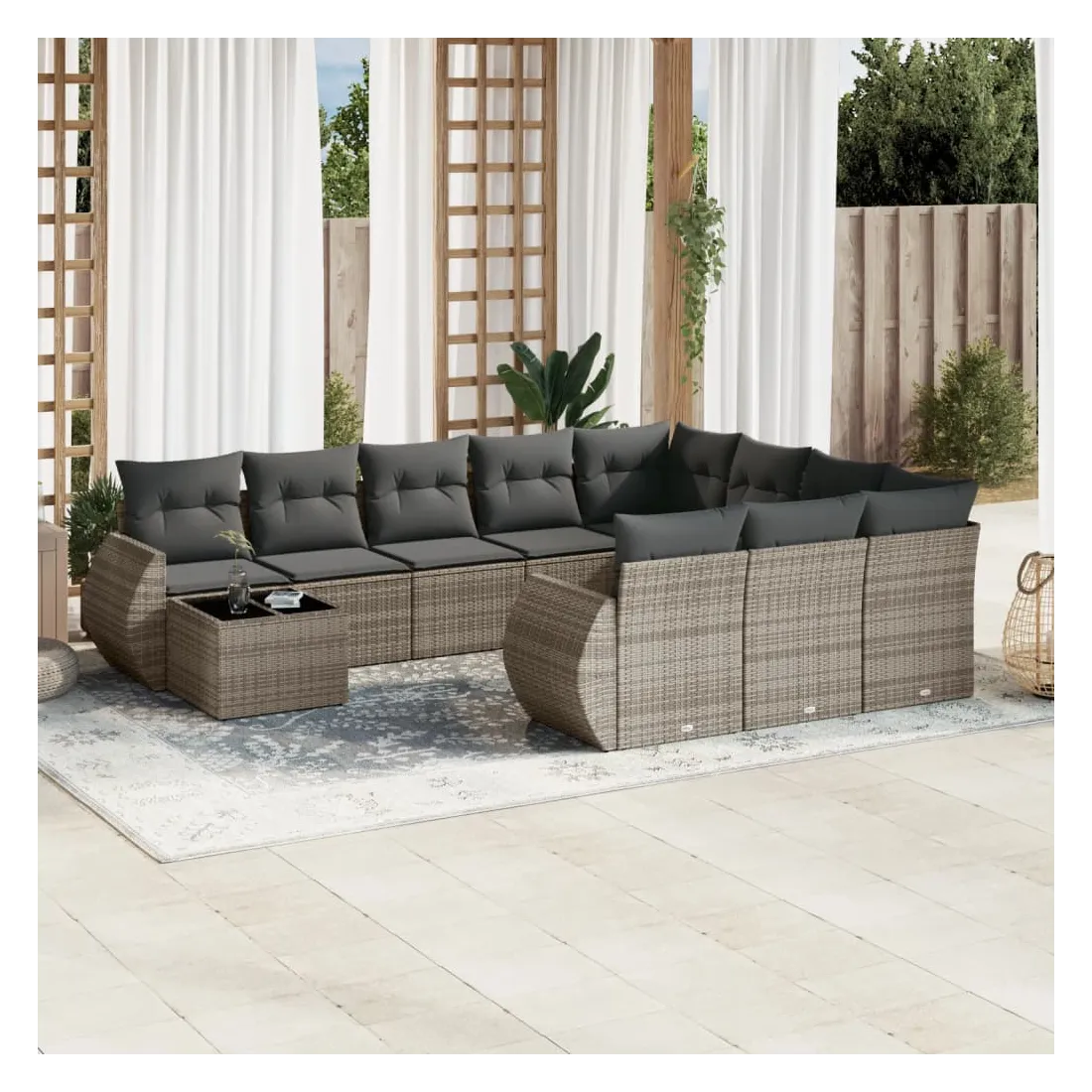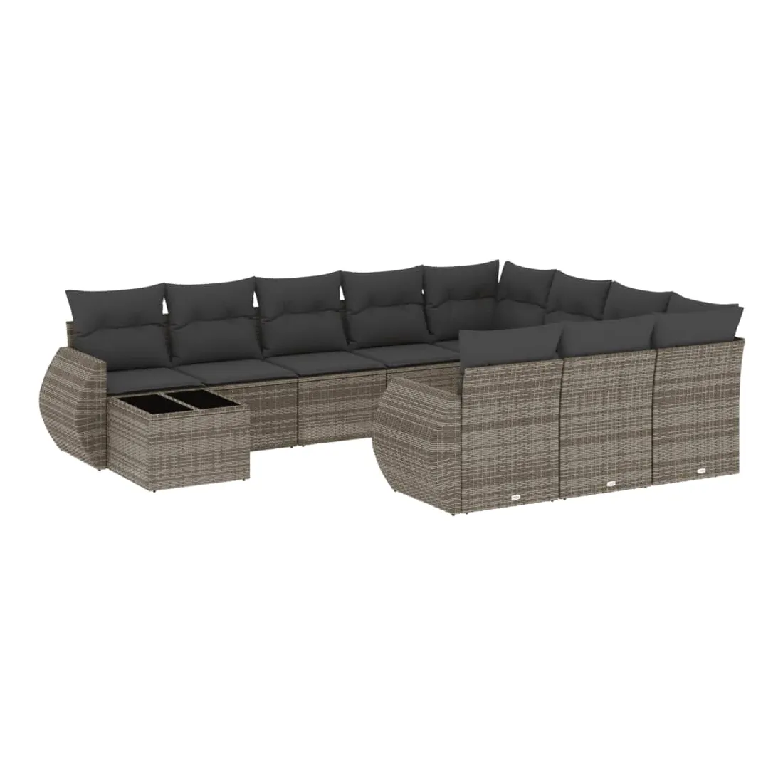 Salon de jardin 11 pcs avec coussins gris résine tressée