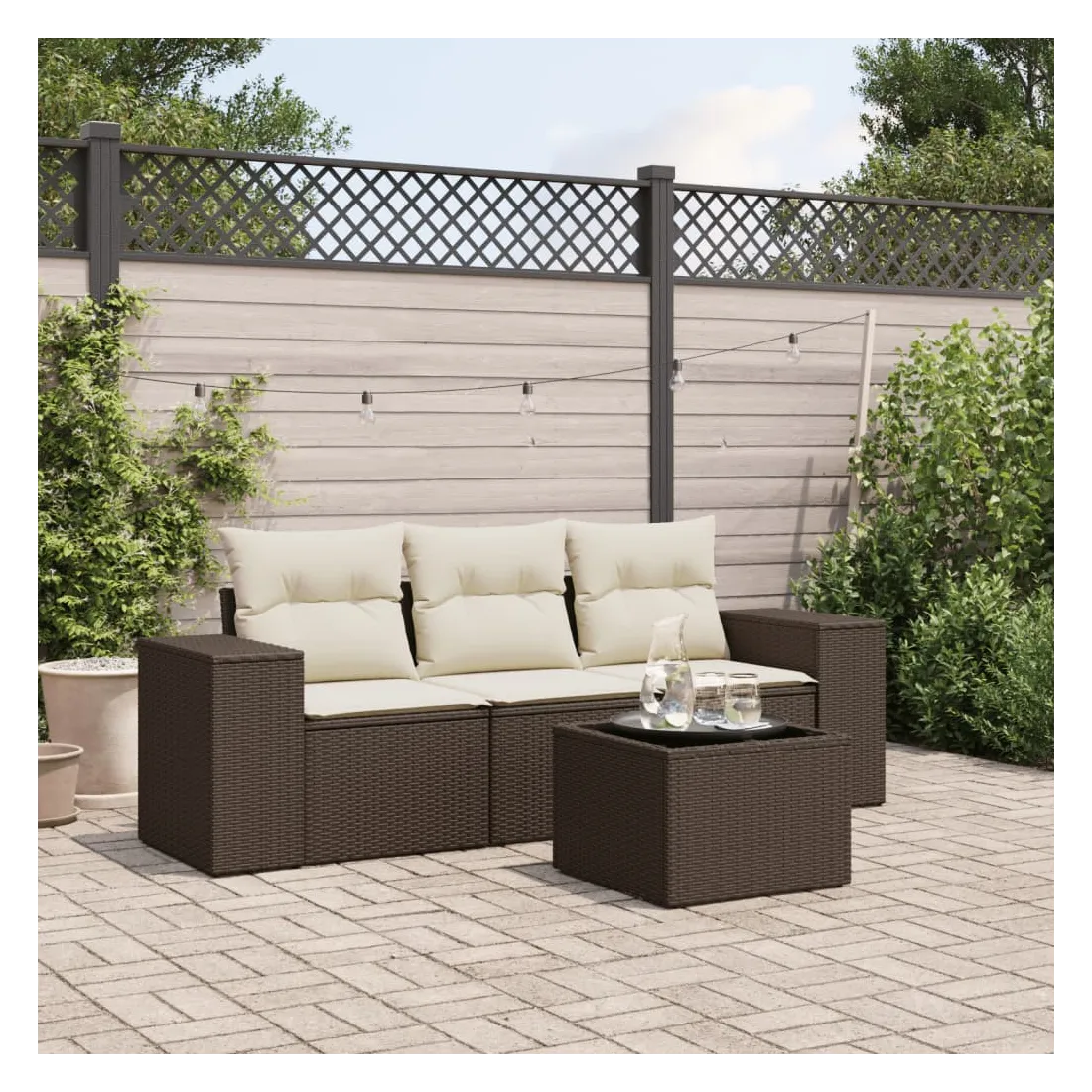 Cet ensemble de canapés de jardin est le complément parfait de votre arrière-cour, terrasse ou patio, offrant un espace confortable et accueillant pour discuter avec la famille et les amis ou simplement se détendre et profiter de l'extérieur. Matériau durable : la résine tressée, également connue sous le nom de poly rotin, est un matériau synthétique solide et nécessitant peu d'entretien qui ressemble au rotin naturel. Il est léger, facile à nettoyer et couramment utilisé pour les meubles d'extérieur en raison de sa durabilité et de ses propriétés de résistance aux intempéries.Dessus en verre : le dessus de la table d'extérieur est fabriqué en verre trempé solide et durable, ce qui le rend facile à nettoyer avec un chiffon humide et ajoute une touche d'élégance à votre espace extérieur.Expérience d'assise confortable : ce mobilier d'extérieur, doté de coussins épais, offre une expérience d'assise confortable.Housse amovible et lavable : ces coussins de siège sont dotés de housses amovibles pour un lavage et un entretien faciles.Conception modulaire : cet ensemble de meubles d'extérieur a une conception modulaire, ce qui le rend complètement flexible et facile à déplacer, afin que vous puissiez créer un agencement de meubles d'extérieur personnalisé. Bon à savoir :Pour que vos meubles d'extérieur restent beaux, nous vous recommandons de les protéger avec une housse imperméable.