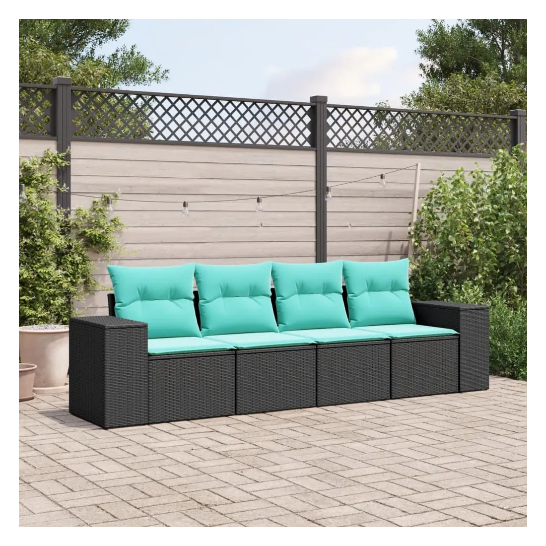 Cet ensemble de canapés de jardin est le complément parfait de votre arrière-cour, terrasse ou patio, offrant un espace confortable et accueillant pour discuter avec la famille et les amis ou simplement se détendre et profiter de l'extérieur. Matériau durable : la résine tressée, également connue sous le nom de poly rotin, est un matériau synthétique solide et nécessitant peu d'entretien qui ressemble au rotin naturel. Elle est légère, facile à nettoyer et couramment utilisée pour les meubles d'extérieur en raison de sa durabilité et de ses propriétés de résistance aux intempéries.Expérience d'assise confortable : ce mobilier d'extérieur, doté de coussins épais, offre une expérience d'assise confortable.Housse amovible et lavable : ces coussins de siège sont dotés de housses amovibles pour un lavage et un entretien faciles.Conception modulaire : cet ensemble de meubles d'extérieur a une conception modulaire, ce qui le rend complètement flexible et facile à déplacer, afin que vous puissiez créer un agencement de meubles d'extérieur personnalisé. Bon à savoir :Pour que vos meubles d'extérieur restent beaux, nous vous recommandons de les protéger avec une housse imperméable.