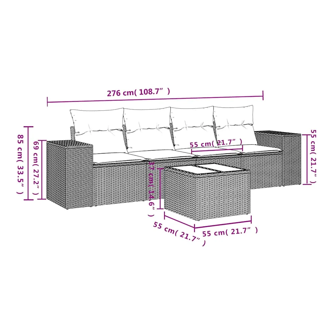 - Dimensions : 55 x 55 x 37 cm (L x l x H)