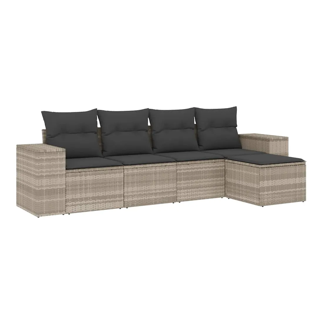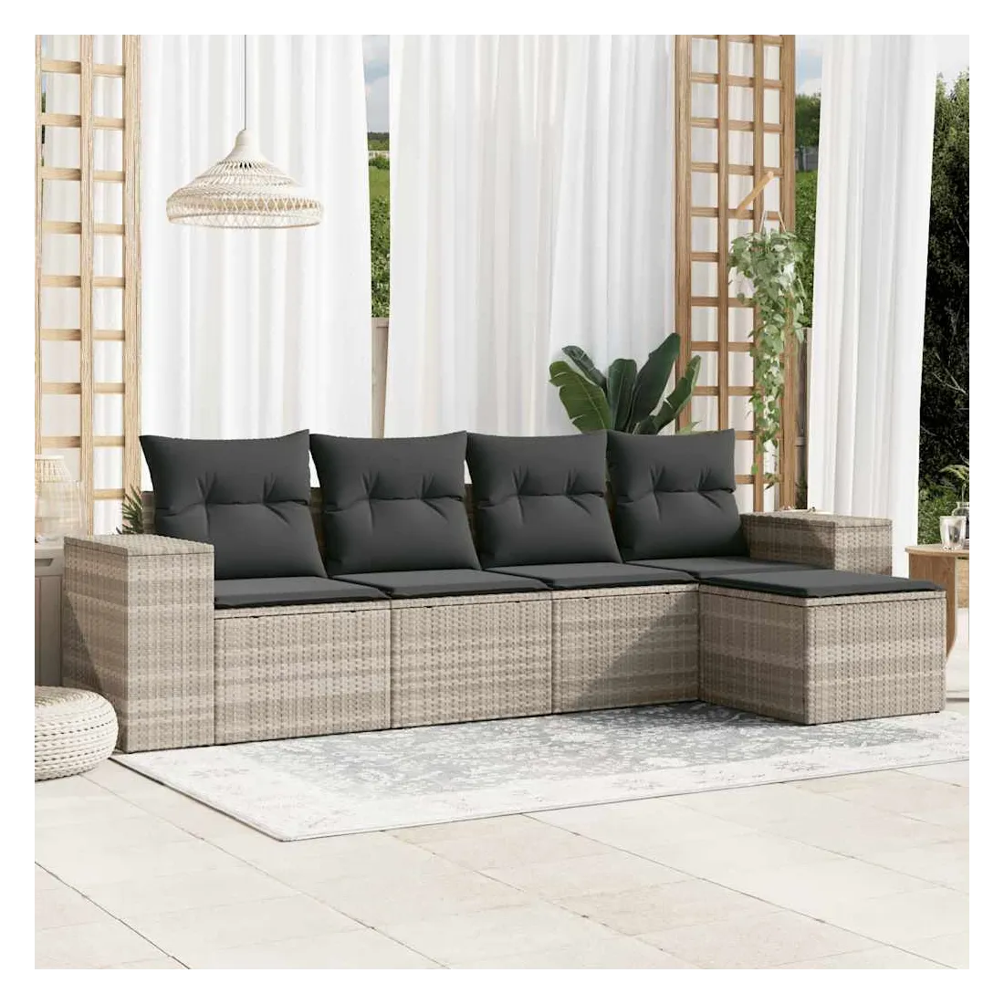 Cet ensemble de canapés de jardin est le complément parfait de votre arrière-cour, terrasse ou patio, offrant un espace confortable et accueillant pour discuter avec la famille et les amis ou simplement se détendre et profiter de l'extérieur. Matériau durable : la résine tressée, également connue sous le nom de poly rotin, est un matériau synthétique solide et nécessitant peu d'entretien qui ressemble au rotin naturel. Il est léger, facile à nettoyer et couramment utilisé pour les meubles d'extérieur en raison de sa durabilité et de ses propriétés de résistance aux intempéries.Expérience d'assise confortable : ce mobilier d'extérieur, doté de coussins épais, offre une expérience d'assise confortable.Housse amovible et lavable : ces coussins de siège sont dotés de housses amovibles pour un lavage et un entretien faciles.Conception modulaire : cet ensemble de meubles d'extérieur a une conception modulaire, ce qui le rend complètement flexible et facile à déplacer, afin que vous puissiez créer un agencement de meubles d'extérieur personnalisé. Bon à savoir :Pour que vos meubles d'extérieur restent beaux, nous vous recommandons de les protéger avec une housse imperméable.