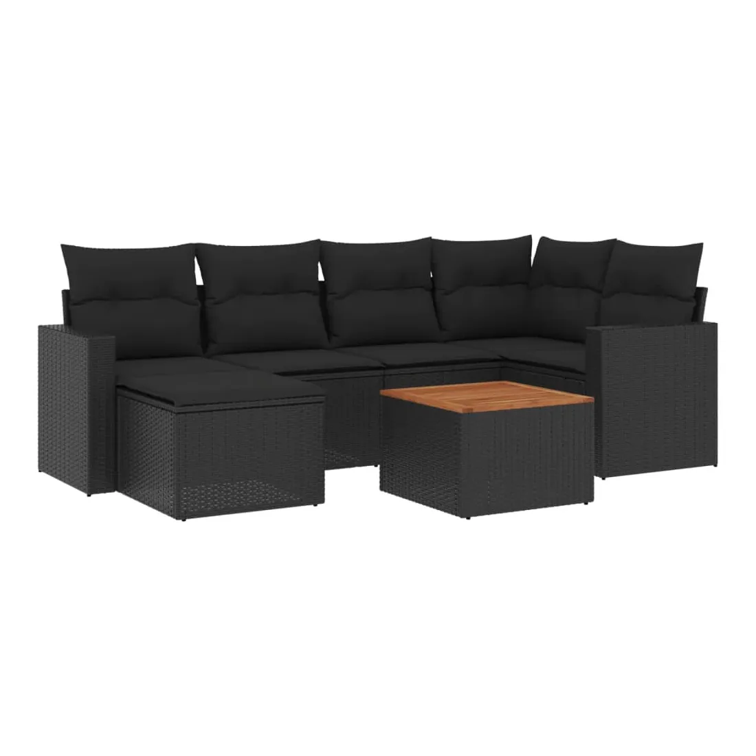 Cet ensemble de canapés de jardin est le complément parfait de votre arrière-cour, terrasse ou patio, offrant un espace confortable et accueillant pour discuter avec la famille et les amis ou simplement se détendre et profiter de l'extérieur. Matériau durable : la résine tressée, également connue sous le nom de poly rotin, est un matériau synthétique solide et nécessitant peu d'entretien qui ressemble au rotin naturel. Il est léger, facile à nettoyer et couramment utilisé pour les meubles d'extérieur en raison de sa durabilité et de ses propriétés de résistance aux intempéries.Dessus stable et facile à nettoyer : cette table de jardin a un dessus en bois d'acacia robuste, durable et facile à nettoyer avec un chiffon humide.Expérience d'assise confortable : ce mobilier d'extérieur, doté de coussins épais, offre une expérience d'assise confortable.Housse amovible et lavable : ces coussins de siège sont dotés de housses amovibles pour un lavage et un entretien faciles.Conception modulaire : cet ensemble de meubles d'extérieur a une conception modulaire, ce qui le rend complètement flexible et facile à déplacer, afin que vous puissiez créer un agencement de meubles d'extérieur personnalisé. Bon à savoir :Pour que vos meubles d'extérieur restent beaux, nous vous recommandons de les protéger avec une housse imperméable.