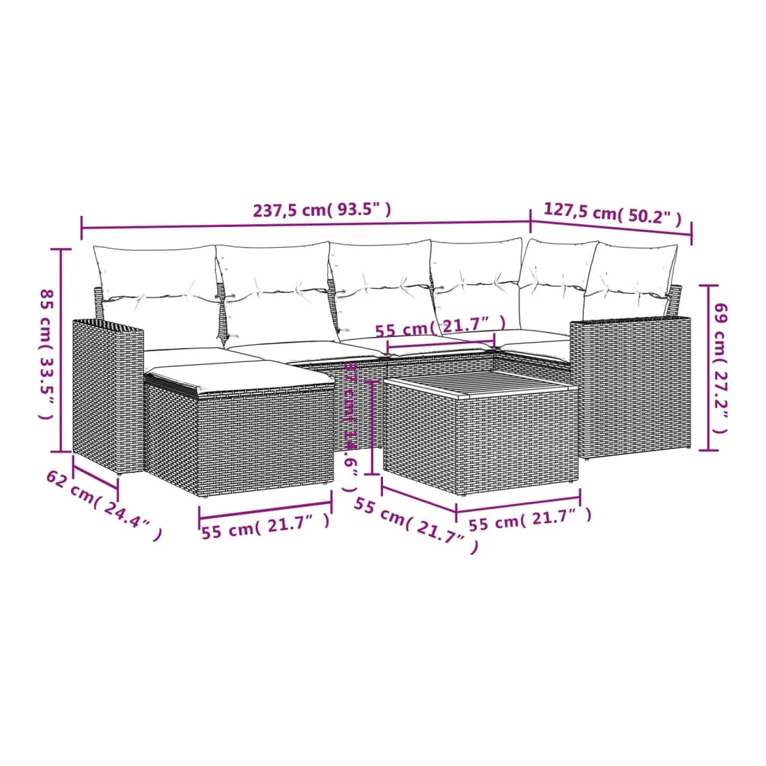 - Dimensions du coussin de siège : 55 x 55 x 3 cm (l x P x é)