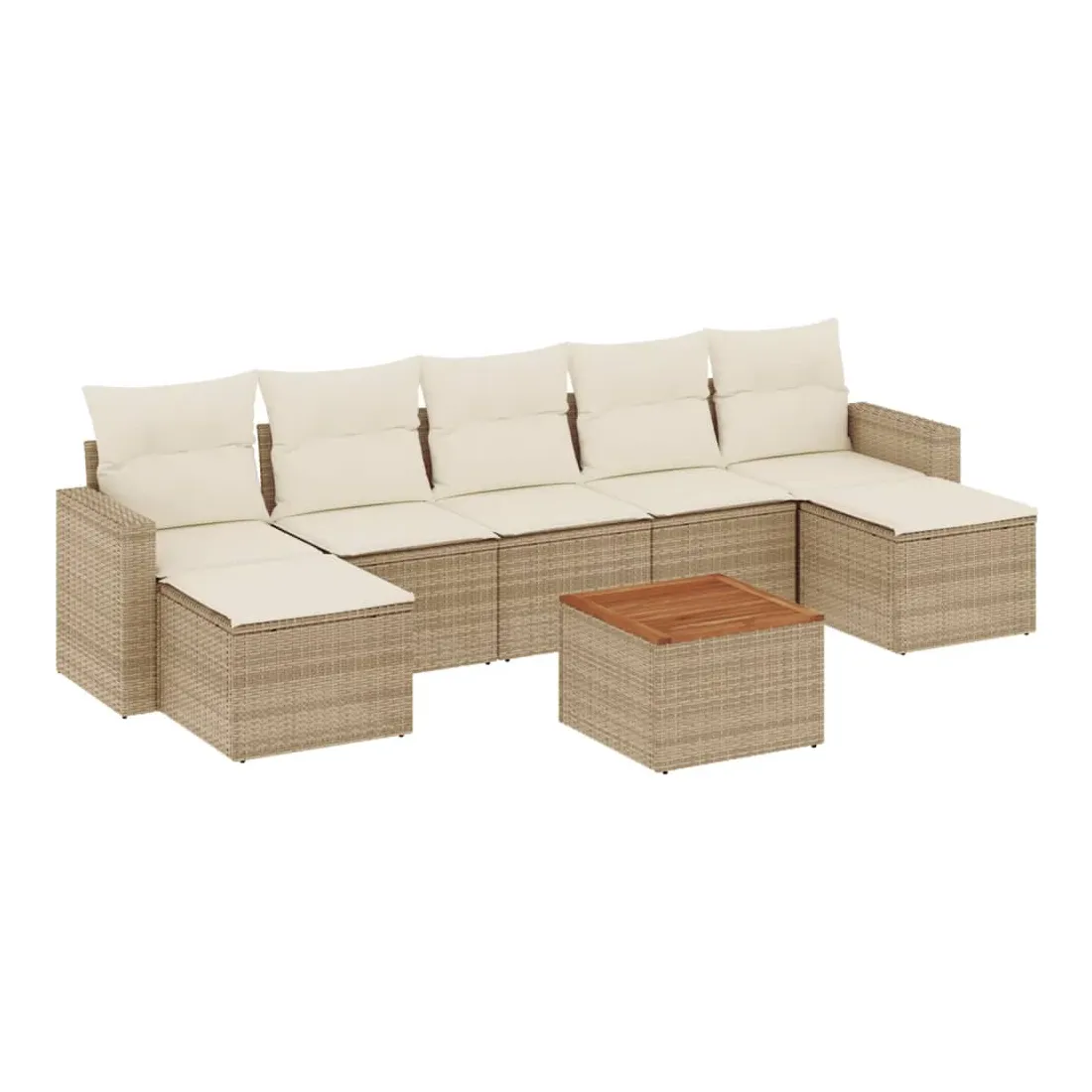 Cet ensemble de canapés de jardin est le complément parfait de votre arrière-cour, terrasse ou patio, offrant un espace confortable et accueillant pour discuter avec la famille et les amis ou simplement se détendre et profiter de l'extérieur. Matériau durable : la résine tressée, également connue sous le nom de poly rotin, est un matériau synthétique solide et nécessitant peu d'entretien qui ressemble au rotin naturel. Il est léger, facile à nettoyer et couramment utilisé pour les meubles d'extérieur en raison de sa durabilité et de ses propriétés de résistance aux intempéries.Dessus stable et facile à nettoyer : cette table de jardin a un dessus en bois d'acacia robuste, durable et facile à nettoyer avec un chiffon humide.Expérience d'assise confortable : ce mobilier d'extérieur, doté de coussins épais, offre une expérience d'assise confortable.Housse amovible et lavable : ces coussins de siège sont dotés de housses amovibles pour un lavage et un entretien faciles.Conception modulaire : cet ensemble de meubles d'extérieur a une conception modulaire, ce qui le rend complètement flexible et facile à déplacer, afin que vous puissiez créer un agencement de meubles d'extérieur personnalisé. Bon à savoir :Pour que vos meubles d'extérieur restent beaux, nous vous recommandons de les protéger avec une housse imperméable.