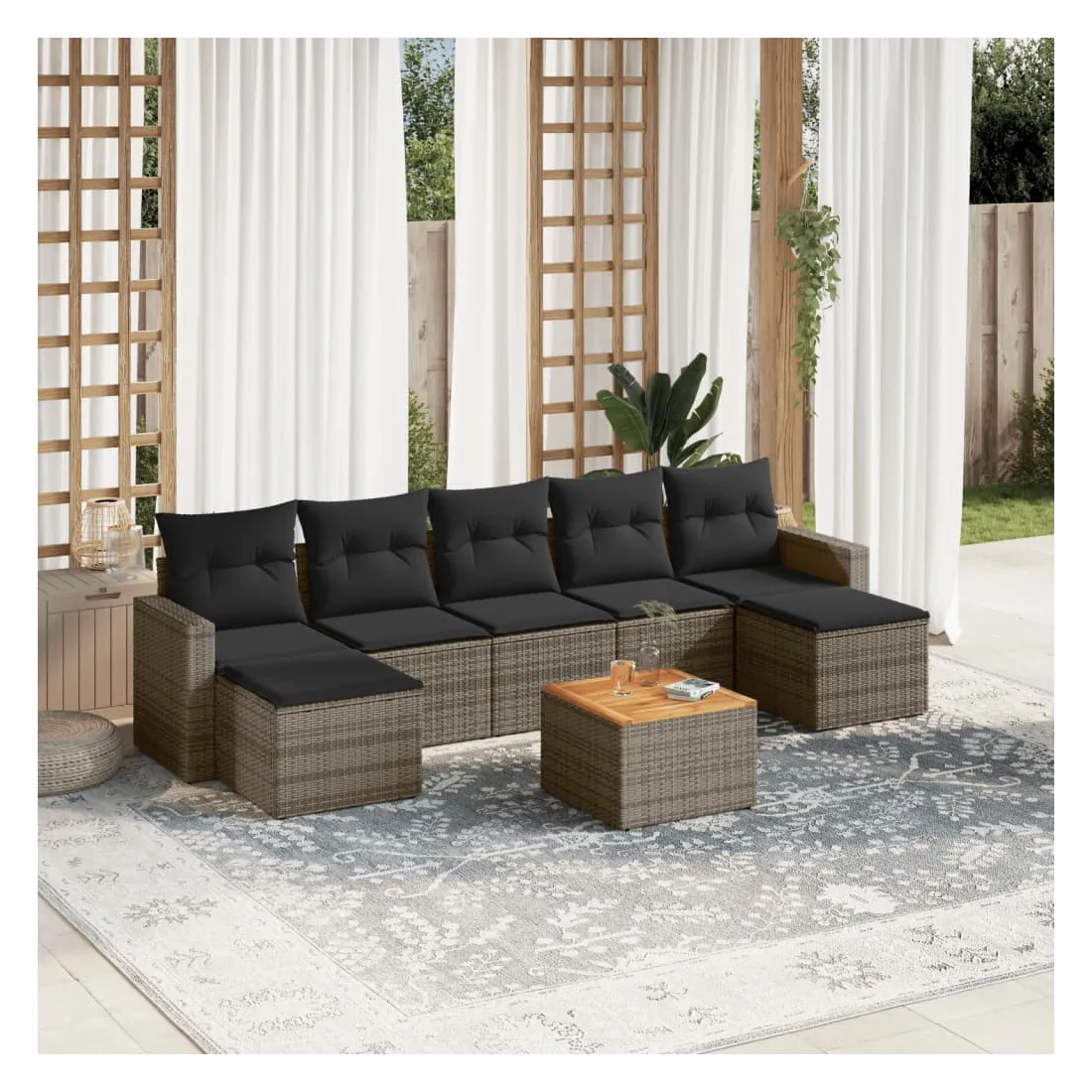 Cet ensemble de canapés de jardin est le complément parfait de votre arrière-cour, terrasse ou patio, offrant un espace confortable et accueillant pour discuter avec la famille et les amis ou simplement se détendre et profiter de l'extérieur. Matériau durable : la résine tressée, également connue sous le nom de poly rotin, est un matériau synthétique solide et nécessitant peu d'entretien qui ressemble au rotin naturel. Il est léger, facile à nettoyer et couramment utilisé pour les meubles d'extérieur en raison de sa durabilité et de ses propriétés de résistance aux intempéries.Dessus stable et facile à nettoyer : cette table de jardin a un dessus en bois d'acacia robuste, durable et facile à nettoyer avec un chiffon humide.Expérience d'assise confortable : ce mobilier d'extérieur, doté de coussins épais, offre une expérience d'assise confortable.Housse amovible et lavable : ces coussins de siège sont dotés de housses amovibles pour un lavage et un entretien faciles.Conception modulaire : cet ensemble de meubles d'extérieur a une conception modulaire, ce qui le rend complètement flexible et facile à déplacer, afin que vous puissiez créer un agencement de meubles d'extérieur personnalisé. Bon à savoir :Pour que vos meubles d'extérieur restent beaux, nous vous recommandons de les protéger avec une housse imperméable.
