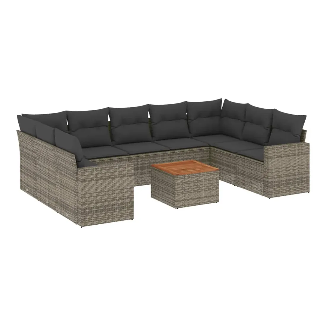 Salon de jardin avec coussins 10 pcs gris résine tressée
