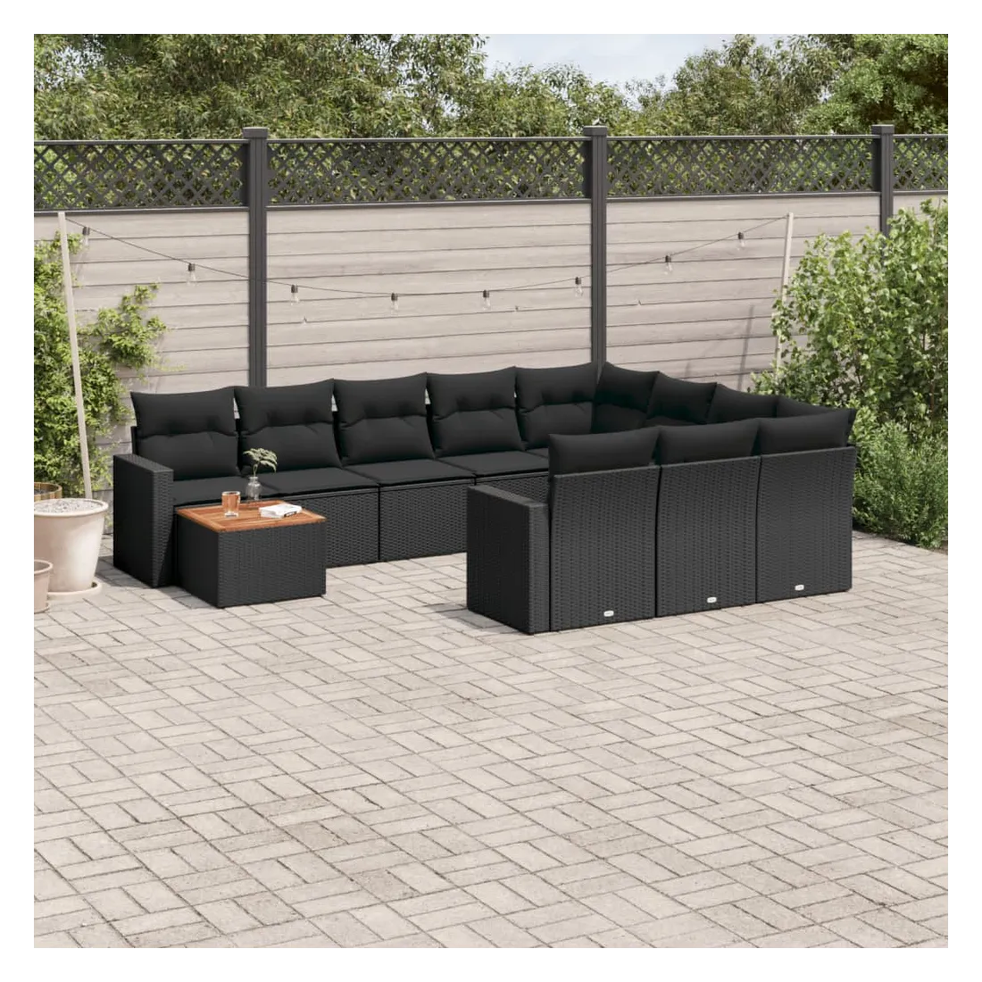 Cet ensemble de canapés de jardin est le complément parfait de votre arrière-cour, terrasse ou patio, offrant un espace confortable et accueillant pour discuter avec la famille et les amis ou simplement se détendre et profiter de l'extérieur. Matériau durable : la résine tressée, également connue sous le nom de poly rotin, est un matériau synthétique solide et nécessitant peu d'entretien qui ressemble au rotin naturel. Il est léger, facile à nettoyer et couramment utilisé pour les meubles d'extérieur en raison de sa durabilité et de ses propriétés de résistance aux intempéries.Dessus stable et facile à nettoyer : cette table de jardin a un dessus en bois d'acacia robuste, durable et facile à nettoyer avec un chiffon humide.Expérience d'assise confortable : ce mobilier d'extérieur, doté de coussins épais, offre une expérience d'assise confortable.Housse amovible et lavable : ces coussins de siège sont dotés de housses amovibles pour un lavage et un entretien faciles.Conception modulaire : cet ensemble de meubles d'extérieur a une conception modulaire, ce qui le rend complètement flexible et facile à déplacer, afin que vous puissiez créer un agencement de meubles d'extérieur personnalisé. Bon à savoir :Pour que vos meubles d'extérieur restent beaux, nous vous recommandons de les protéger avec une housse imperméable.