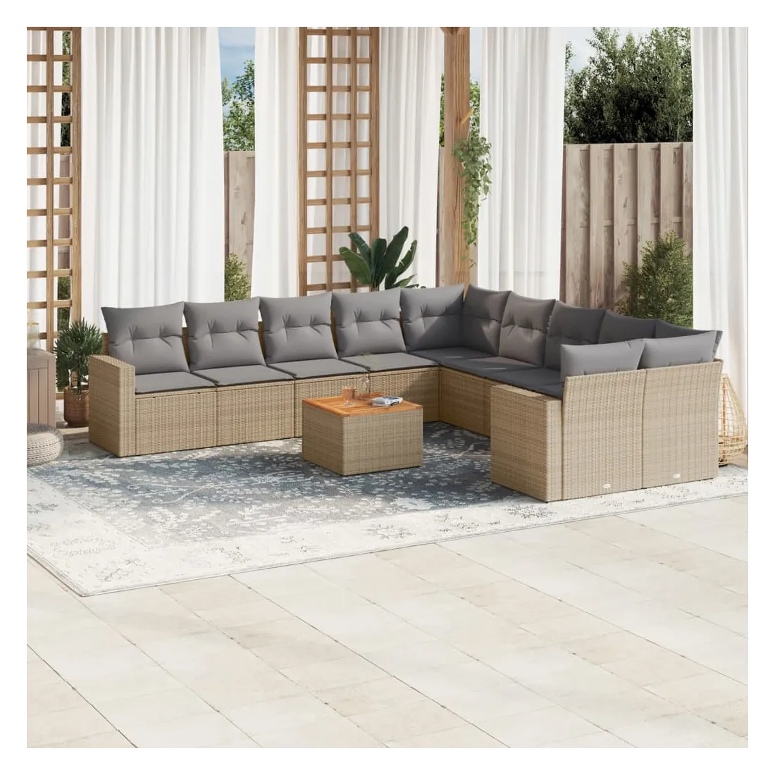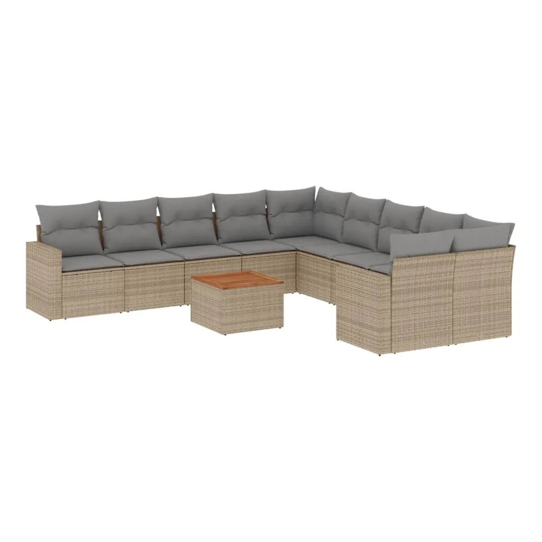Salon de jardin 11 pcs avec coussins beige résine tressée