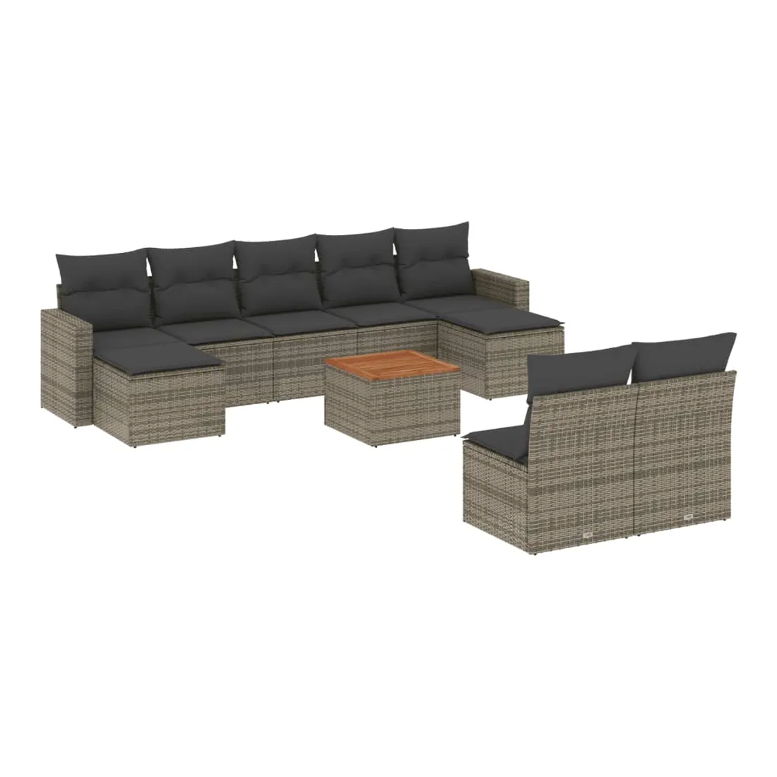 Cet ensemble de canapés de jardin est le complément parfait de votre arrière-cour, terrasse ou patio, offrant un espace confortable et accueillant pour discuter avec la famille et les amis ou simplement se détendre et profiter de l'extérieur. Matériau durable : la résine tressée, également connue sous le nom de poly rotin, est un matériau synthétique solide et nécessitant peu d'entretien qui ressemble au rotin naturel. Il est léger, facile à nettoyer et couramment utilisé pour les meubles d'extérieur en raison de sa durabilité et de ses propriétés de résistance aux intempéries.Dessus stable et facile à nettoyer : cette table de jardin a un dessus en bois d'acacia robuste, durable et facile à nettoyer avec un chiffon humide.Expérience d'assise confortable : ce mobilier d'extérieur, doté de coussins épais, offre une expérience d'assise confortable.Housse amovible et lavable : ces coussins de siège sont dotés de housses amovibles pour un lavage et un entretien faciles.Conception modulaire : cet ensemble de meubles d'extérieur a une conception modulaire, ce qui le rend complètement flexible et facile à déplacer, afin que vous puissiez créer un agencement de meubles d'extérieur personnalisé. Bon à savoir :Pour que vos meubles d'extérieur restent beaux, nous vous recommandons de les protéger avec une housse imperméable.