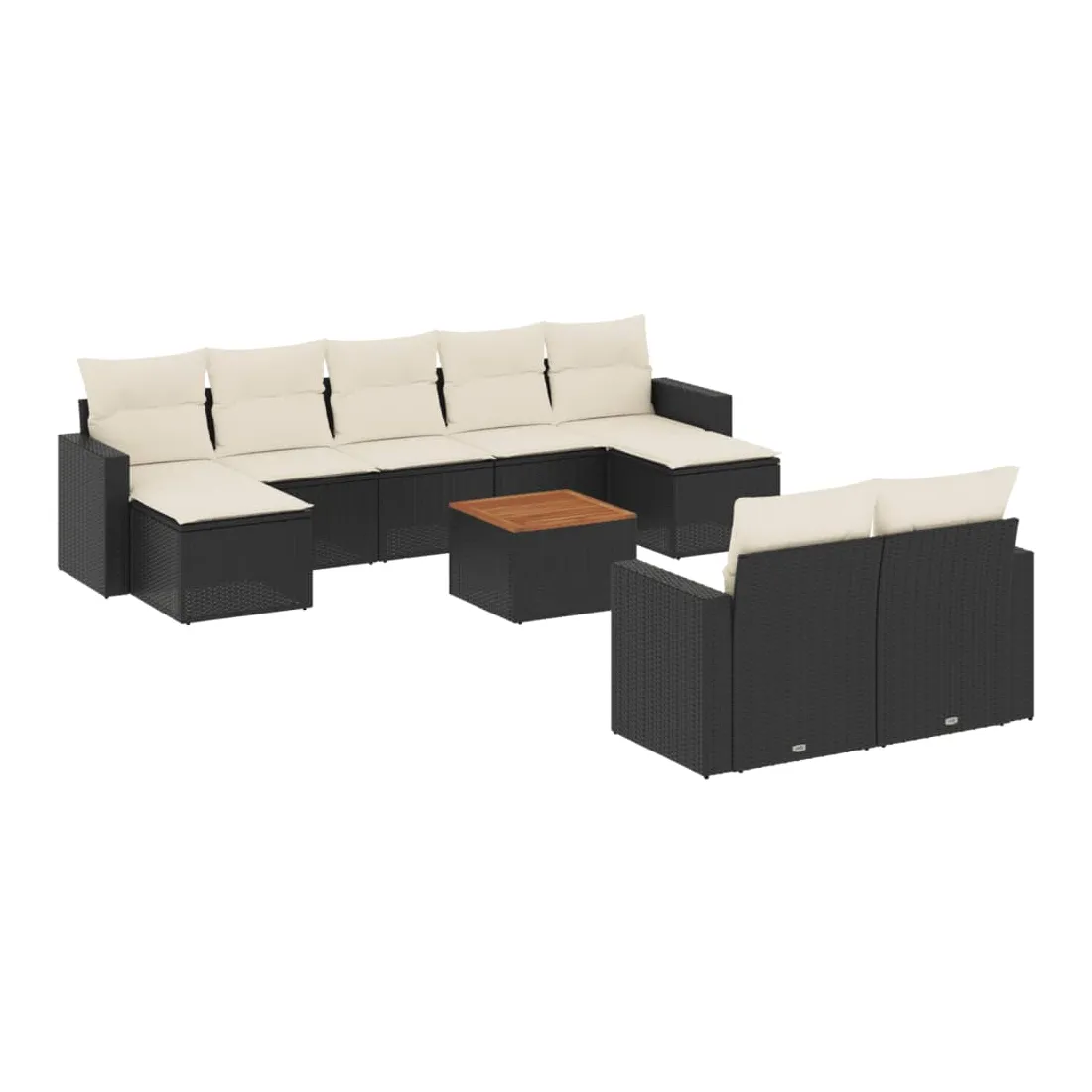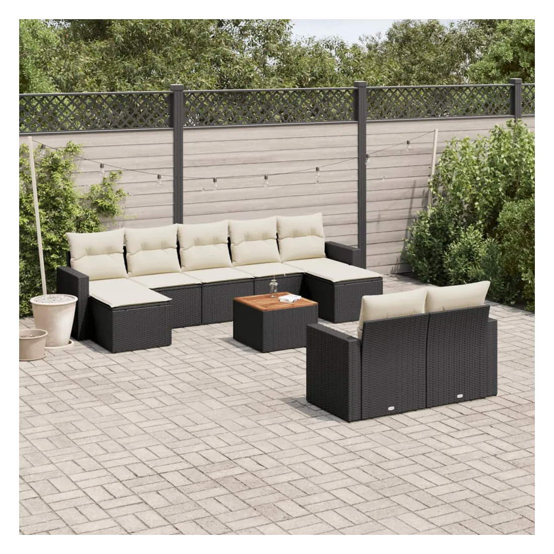Cet ensemble de canapés de jardin est le complément parfait de votre arrière-cour, terrasse ou patio, offrant un espace confortable et accueillant pour discuter avec la famille et les amis ou simplement se détendre et profiter de l'extérieur. Matériau durable : la résine tressée, également connue sous le nom de poly rotin, est un matériau synthétique solide et nécessitant peu d'entretien qui ressemble au rotin naturel. Il est léger, facile à nettoyer et couramment utilisé pour les meubles d'extérieur en raison de sa durabilité et de ses propriétés de résistance aux intempéries.Dessus stable et facile à nettoyer : cette table de jardin a un dessus en bois d'acacia robuste, durable et facile à nettoyer avec un chiffon humide.Expérience d'assise confortable : ce mobilier d'extérieur, doté de coussins épais, offre une expérience d'assise confortable.Housse amovible et lavable : ces coussins de siège sont dotés de housses amovibles pour un lavage et un entretien faciles.Conception modulaire : cet ensemble de meubles d'extérieur a une conception modulaire, ce qui le rend complètement flexible et facile à déplacer, afin que vous puissiez créer un agencement de meubles d'extérieur personnalisé. Bon à savoir :Pour que vos meubles d'extérieur restent beaux, nous vous recommandons de les protéger avec une housse imperméable.