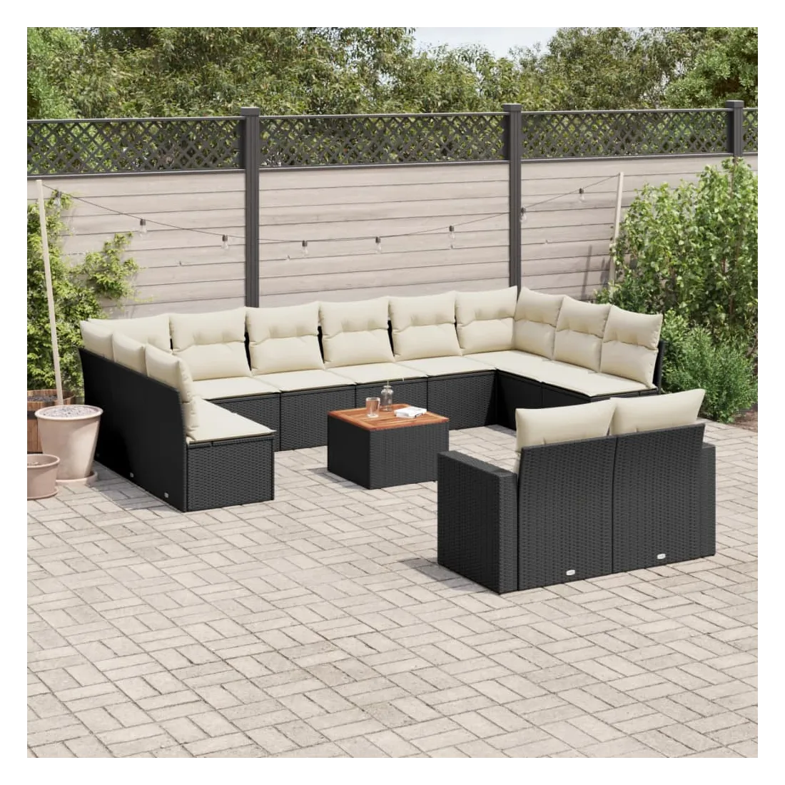 Cet ensemble de canapés de jardin est le complément parfait de votre arrière-cour, terrasse ou patio, offrant un espace confortable et accueillant pour discuter avec la famille et les amis ou simplement se détendre et profiter de l'extérieur. Matériau durable : la résine tressée, également connue sous le nom de poly rotin, est un matériau synthétique solide et nécessitant peu d'entretien qui ressemble au rotin naturel. Il est léger, facile à nettoyer et couramment utilisé pour les meubles d'extérieur en raison de sa durabilité et de ses propriétés de résistance aux intempéries.Dessus stable et facile à nettoyer : cette table de jardin a un dessus en bois d'acacia robuste, durable et facile à nettoyer avec un chiffon humide.Expérience d'assise confortable : ce mobilier d'extérieur, doté de coussins épais, offre une expérience d'assise confortable.Housse amovible et lavable : ces coussins de siège sont dotés de housses amovibles pour un lavage et un entretien faciles.Conception modulaire : cet ensemble de meubles d'extérieur a une conception modulaire, ce qui le rend complètement flexible et facile à déplacer, afin que vous puissiez créer un agencement de meubles d'extérieur personnalisé. Bon à savoir :Pour que vos meubles d'extérieur restent beaux, nous vous recommandons de les protéger avec une housse imperméable.