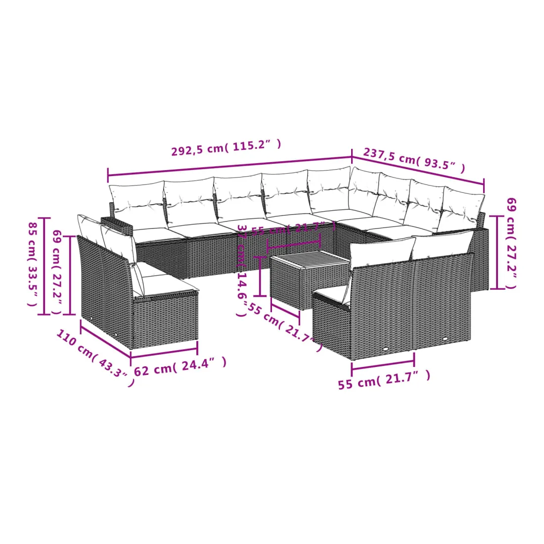 Cet ensemble de canapés de jardin est le complément parfait de votre arrière-cour, terrasse ou patio, offrant un espace confortable et accueillant pour discuter avec la famille et les amis ou simplement se détendre et profiter de l'extérieur. Matériau durable : la résine tressée, également connue sous le nom de poly rotin, est un matériau synthétique solide et nécessitant peu d'entretien qui ressemble au rotin naturel. Il est léger, facile à nettoyer et couramment utilisé pour les meubles d'extérieur en raison de sa durabilité et de ses propriétés de résistance aux intempéries.Dessus stable et facile à nettoyer : cette table de jardin a un dessus en bois d'acacia robuste, durable et facile à nettoyer avec un chiffon humide.Expérience d'assise confortable : ce mobilier d'extérieur, doté de coussins épais, offre une expérience d'assise confortable.Housse amovible et lavable : ces coussins de siège sont dotés de housses amovibles pour un lavage et un entretien faciles.Conception modulaire : cet ensemble de meubles d'extérieur a une conception modulaire, ce qui le rend complètement flexible et facile à déplacer, afin que vous puissiez créer un agencement de meubles d'extérieur personnalisé. Bon à savoir :Pour que vos meubles d'extérieur restent beaux, nous vous recommandons de les protéger avec une housse imperméable.