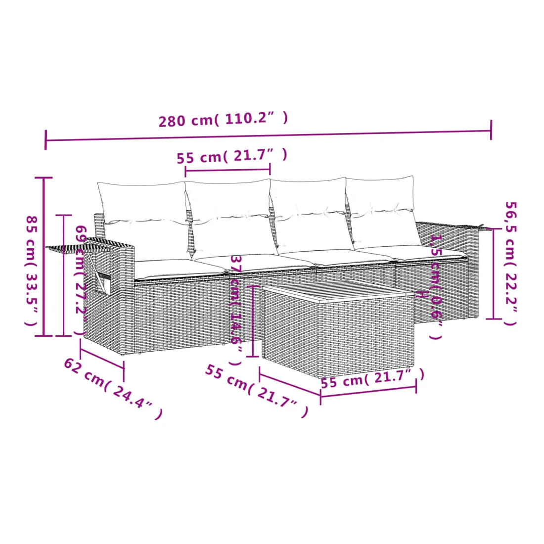 - Dimensions : 55 x 55 x 37 cm (L x l x H)