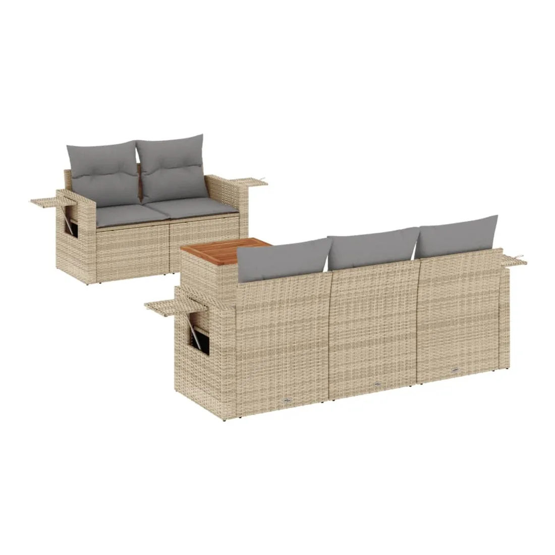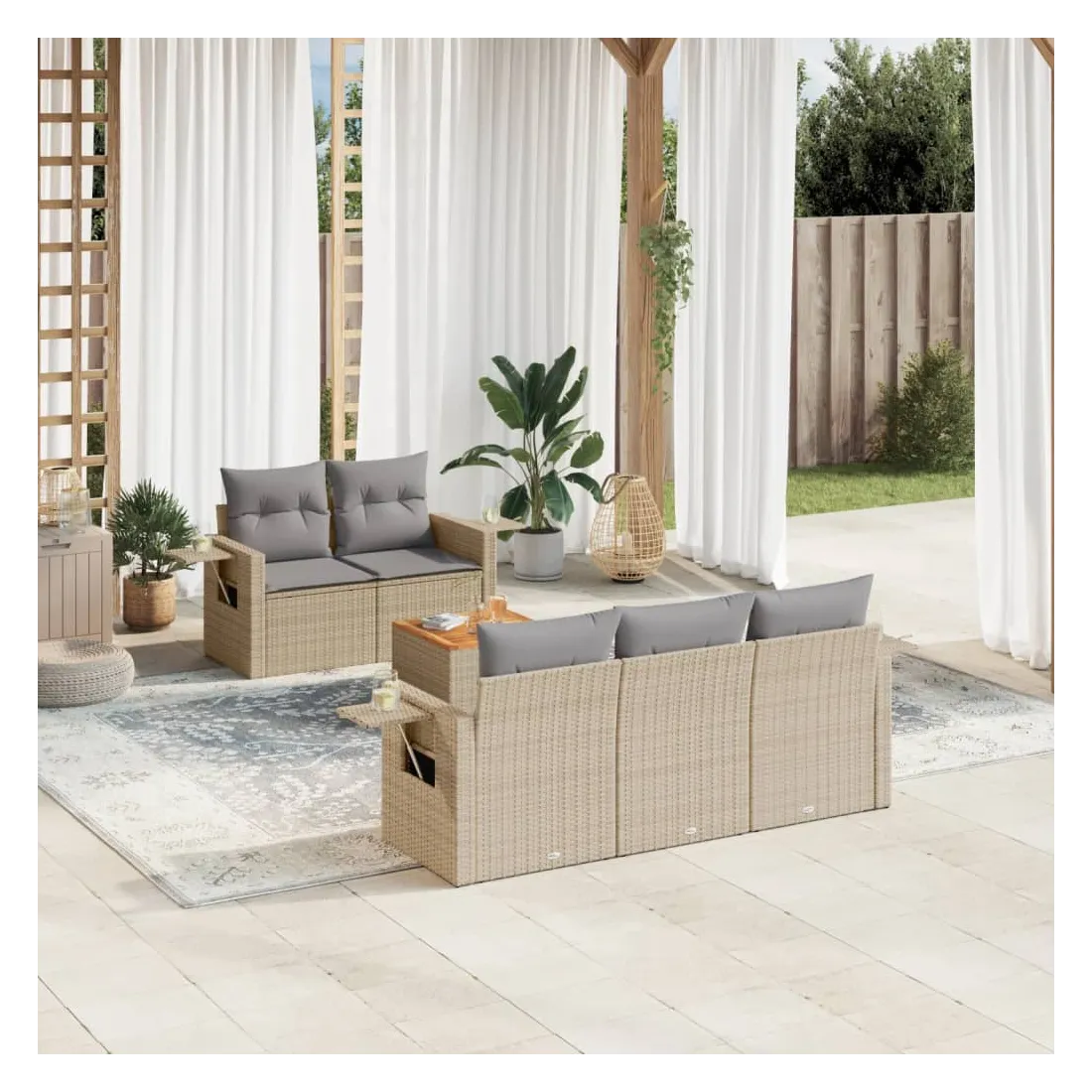 Cet ensemble de canapés de jardin est le complément parfait de votre arrière-cour, terrasse ou patio, offrant un espace confortable et accueillant pour discuter avec la famille et les amis ou simplement se détendre et profiter de l'extérieur. Matériau durable : la résine tressée, également connue sous le nom de poly rotin, est un matériau synthétique solide et nécessitant peu d'entretien qui ressemble au rotin naturel. Il est léger, facile à nettoyer et couramment utilisé pour les meubles d'extérieur en raison de sa durabilité et de ses propriétés de résistance aux intempéries.Table d'appoint pratique : ce mobilier d'extérieur comprend une table d'appoint pliable avec un ressort à gaz sur les accoudoirs, offrant un endroit pratique pour garder vos essentiels à portée de main.Dessus stable et facile à nettoyer : cette table de jardin a un dessus en bois d'acacia robuste, durable et facile à nettoyer avec un chiffon humide.Housse amovible et lavable : ces coussins de siège sont dotés de housses amovibles pour un lavage et un entretien faciles.Conception modulaire : cet ensemble de meubles d'extérieur a une conception modulaire, ce qui le rend complètement flexible et facile à déplacer, afin que vous puissiez créer un agencement de meubles d'extérieur personnalisé. Bon à savoir :Pour que vos meubles d'extérieur restent beaux, nous vous recommandons de les protéger avec une housse imperméable.