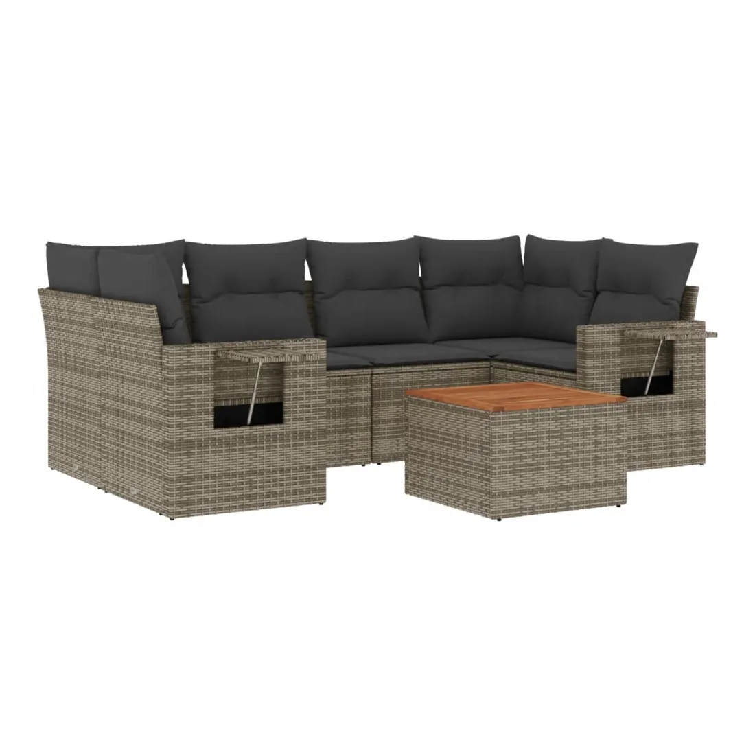 Cet ensemble de canapés de jardin est le complément parfait de votre arrière-cour, terrasse ou patio, offrant un espace confortable et accueillant pour discuter avec la famille et les amis ou simplement se détendre et profiter de l'extérieur. Matériau durable : la résine tressée, également connue sous le nom de poly rotin, est un matériau synthétique solide et nécessitant peu d'entretien qui ressemble au rotin naturel. Il est léger, facile à nettoyer et couramment utilisé pour les meubles d'extérieur en raison de sa durabilité et de ses propriétés de résistance aux intempéries.Table d'appoint pratique : ce mobilier d'extérieur comprend une table d'appoint pliable avec un ressort à gaz sur les accoudoirs, offrant un endroit pratique pour garder vos essentiels à portée de main.Dessus stable et facile à nettoyer : cette table de jardin a un dessus en bois d'acacia robuste, durable et facile à nettoyer avec un chiffon humide.Housse amovible et lavable : ces coussins de siège sont dotés de housses amovibles pour un lavage et un entretien faciles.Conception modulaire : cet ensemble de meubles d'extérieur a une conception modulaire, ce qui le rend complètement flexible et facile à déplacer, afin que vous puissiez créer un agencement de meubles d'extérieur personnalisé. Bon à savoir :Pour que vos meubles d'extérieur restent beaux, nous vous recommandons de les protéger avec une housse imperméable.