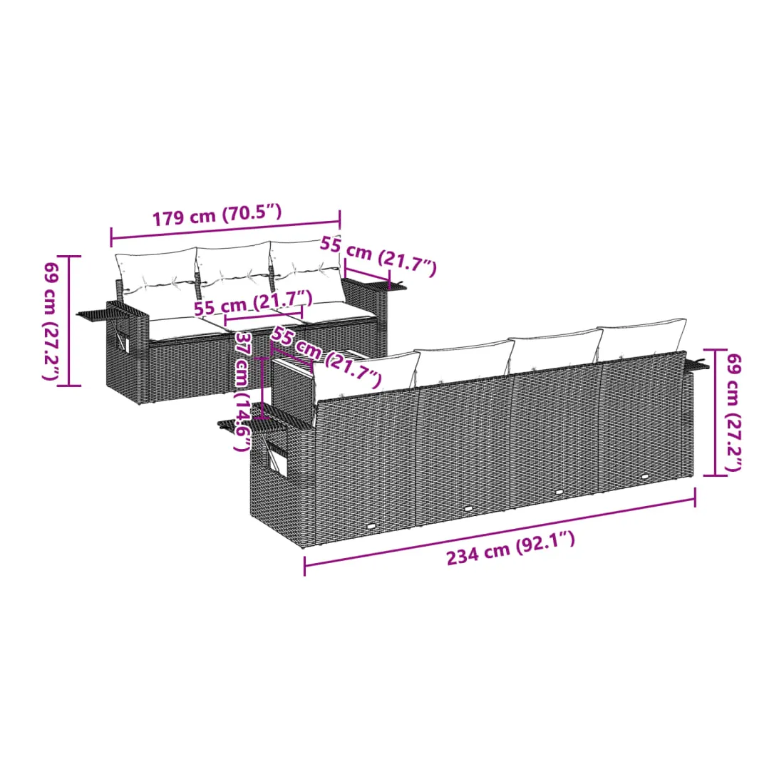 - 7 x coussin de siège avec housse amovible et lavable