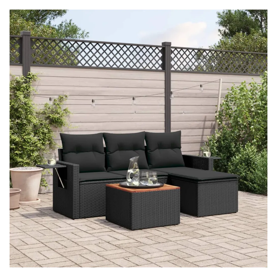 Cet ensemble de canapés de jardin est le complément parfait de votre arrière-cour, terrasse ou patio, offrant un espace confortable et accueillant pour discuter avec la famille et les amis ou simplement se détendre et profiter de l'extérieur. Matériau durable : la résine tressée, également connue sous le nom de poly rotin, est un matériau synthétique solide et nécessitant peu d'entretien qui ressemble au rotin naturel. Il est léger, facile à nettoyer et couramment utilisé pour les meubles d'extérieur en raison de sa durabilité et de ses propriétés de résistance aux intempéries.Table d'appoint pratique : ce mobilier d'extérieur comprend une table d'appoint pliable avec un ressort à gaz sur les accoudoirs, offrant un endroit pratique pour garder vos essentiels à portée de main.Dessus stable et facile à nettoyer : cette table de jardin a un dessus en bois d'acacia robuste, durable et facile à nettoyer avec un chiffon humide.Housse amovible et lavable : ces coussins de siège sont dotés de housses amovibles pour un lavage et un entretien faciles.Conception modulaire : cet ensemble de meubles d'extérieur a une conception modulaire, ce qui le rend complètement flexible et facile à déplacer, afin que vous puissiez créer un agencement de meubles d'extérieur personnalisé. Bon à savoir :Pour que vos meubles d'extérieur restent beaux, nous vous recommandons de les protéger avec une housse imperméable.