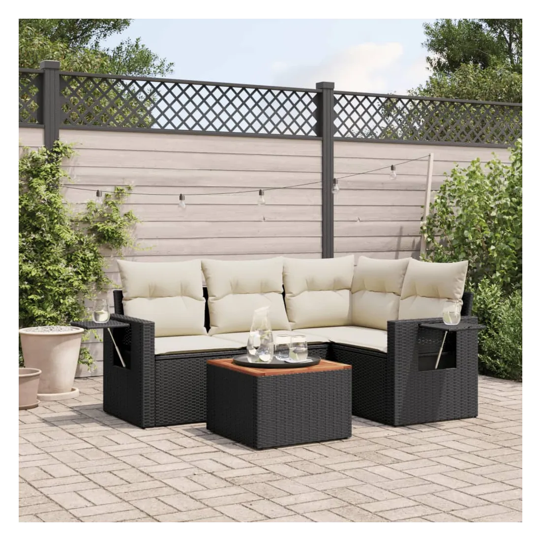 Cet ensemble de canapés de jardin est le complément parfait de votre arrière-cour, terrasse ou patio, offrant un espace confortable et accueillant pour discuter avec la famille et les amis ou simplement se détendre et profiter de l'extérieur. Matériau durable : la résine tressée, également connue sous le nom de poly rotin, est un matériau synthétique solide et nécessitant peu d'entretien qui ressemble au rotin naturel. Il est léger, facile à nettoyer et couramment utilisé pour les meubles d'extérieur en raison de sa durabilité et de ses propriétés de résistance aux intempéries.Table d'appoint pratique : ce mobilier d'extérieur comprend une table d'appoint pliable avec un ressort à gaz sur les accoudoirs, offrant un endroit pratique pour garder vos essentiels à portée de main.Dessus stable et facile à nettoyer : cette table de jardin a un dessus en bois d'acacia robuste, durable et facile à nettoyer avec un chiffon humide.Housse amovible et lavable : ces coussins de siège sont dotés de housses amovibles pour un lavage et un entretien faciles.Conception modulaire : cet ensemble de meubles d'extérieur a une conception modulaire, ce qui le rend complètement flexible et facile à déplacer, afin que vous puissiez créer un agencement de meubles d'extérieur personnalisé. Bon à savoir :Pour que vos meubles d'extérieur restent beaux, nous vous recommandons de les protéger avec une housse imperméable.