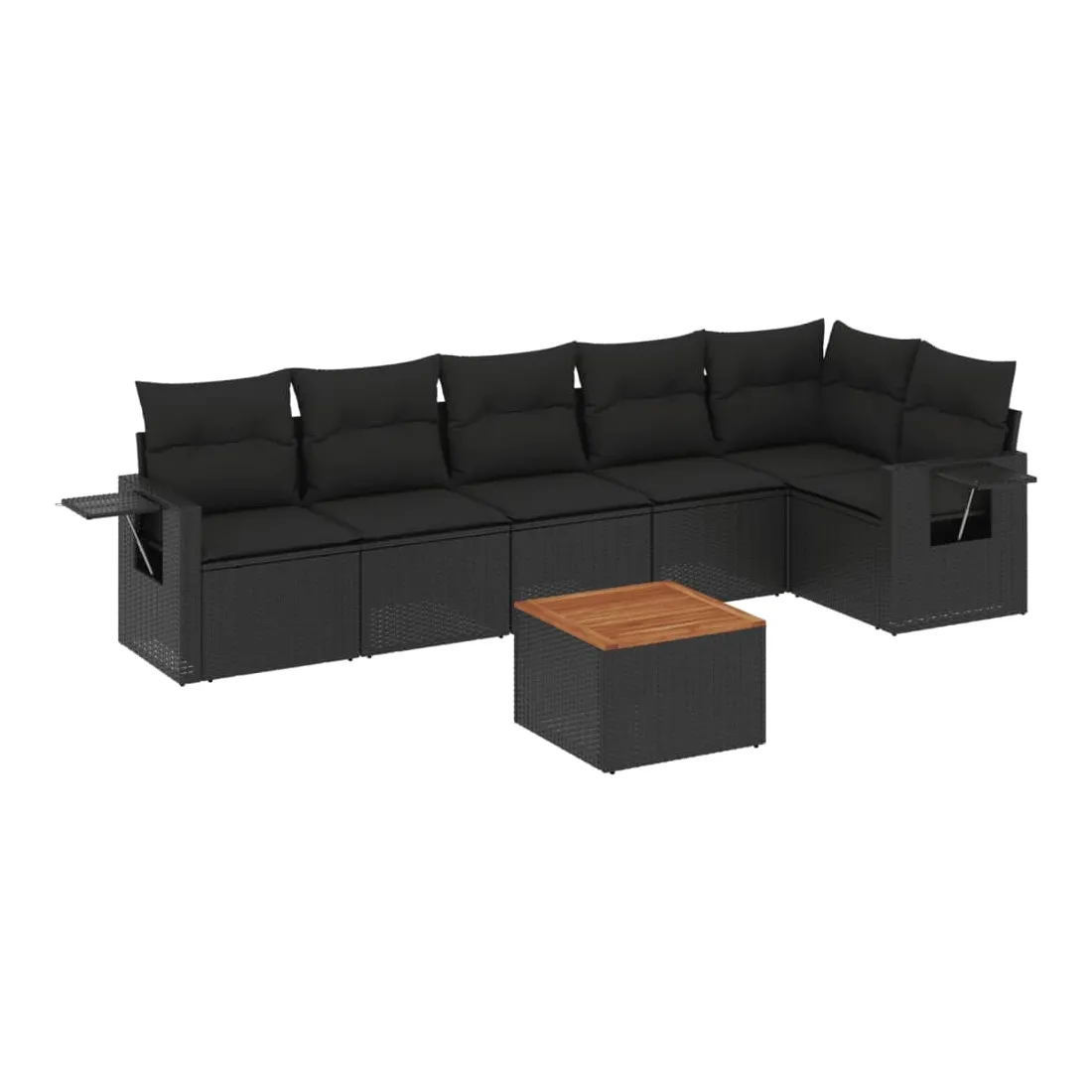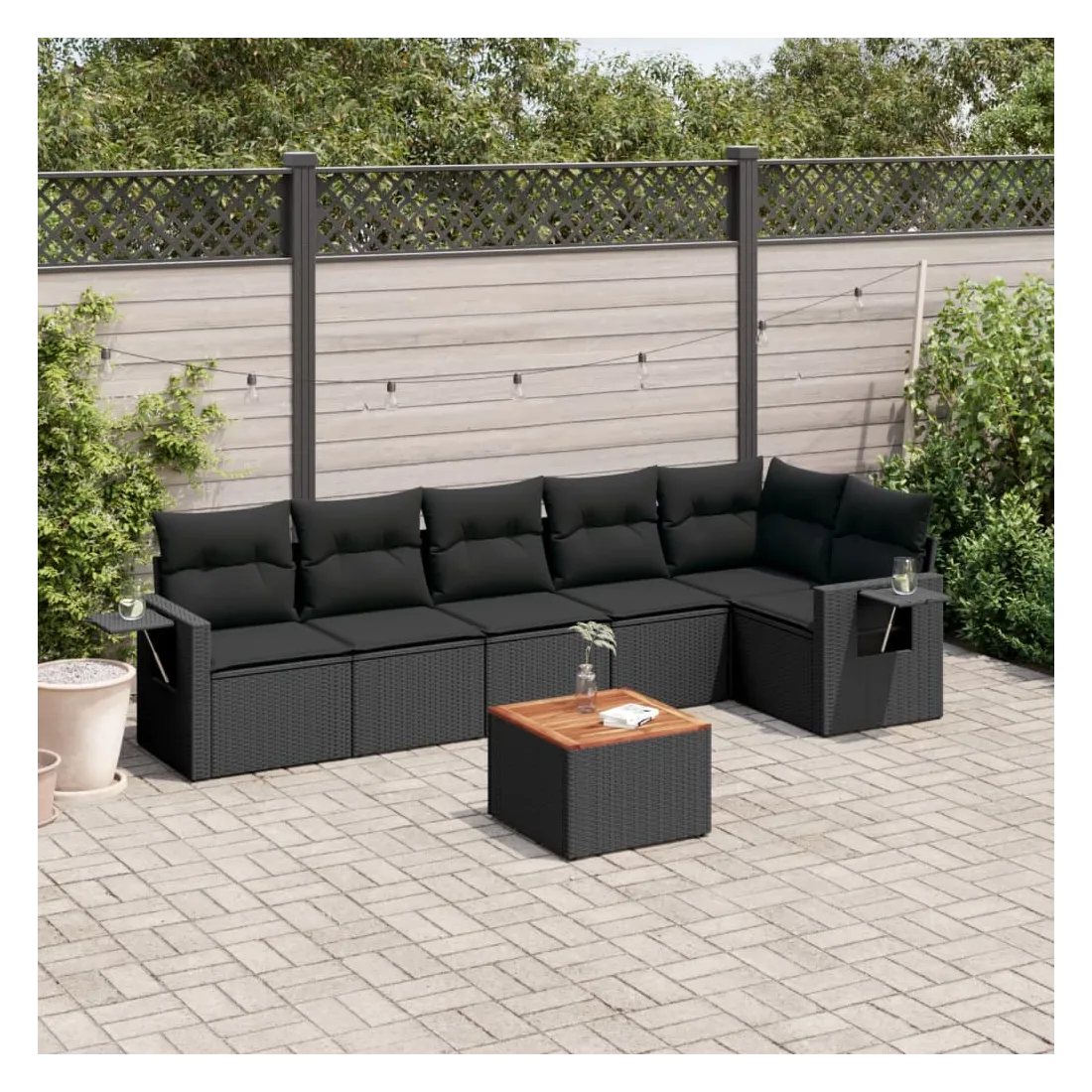 Salon de jardin 7 pcs avec coussins noir résine tressée
