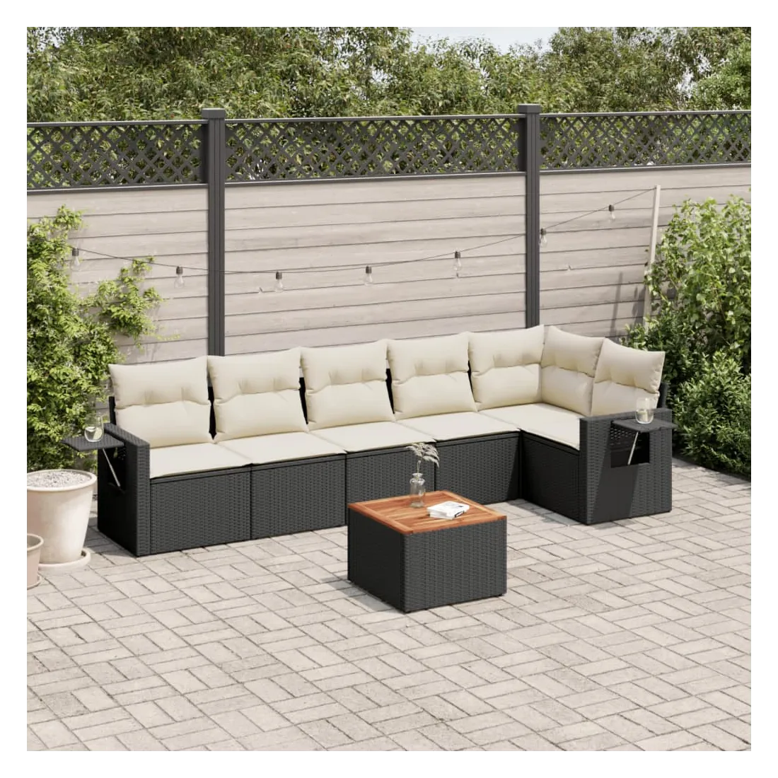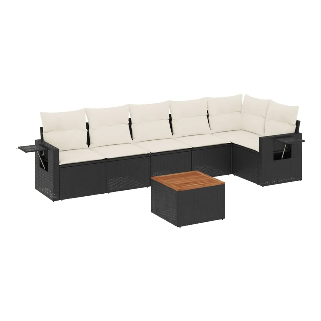 Cet ensemble de canapés de jardin est le complément parfait de votre arrière-cour, terrasse ou patio, offrant un espace confortable et accueillant pour discuter avec la famille et les amis ou simplement se détendre et profiter de l'extérieur. Matériau durable : la résine tressée, également connue sous le nom de poly rotin, est un matériau synthétique solide et nécessitant peu d'entretien qui ressemble au rotin naturel. Il est léger, facile à nettoyer et couramment utilisé pour les meubles d'extérieur en raison de sa durabilité et de ses propriétés de résistance aux intempéries.Table d'appoint pratique : ce mobilier d'extérieur comprend une table d'appoint pliable avec un ressort à gaz sur les accoudoirs, offrant un endroit pratique pour garder vos essentiels à portée de main.Dessus stable et facile à nettoyer : cette table de jardin a un dessus en bois d'acacia robuste, durable et facile à nettoyer avec un chiffon humide.Housse amovible et lavable : ces coussins de siège sont dotés de housses amovibles pour un lavage et un entretien faciles.Conception modulaire : cet ensemble de meubles d'extérieur a une conception modulaire, ce qui le rend complètement flexible et facile à déplacer, afin que vous puissiez créer un agencement de meubles d'extérieur personnalisé. Bon à savoir :Pour que vos meubles d'extérieur restent beaux, nous vous recommandons de les protéger avec une housse imperméable.