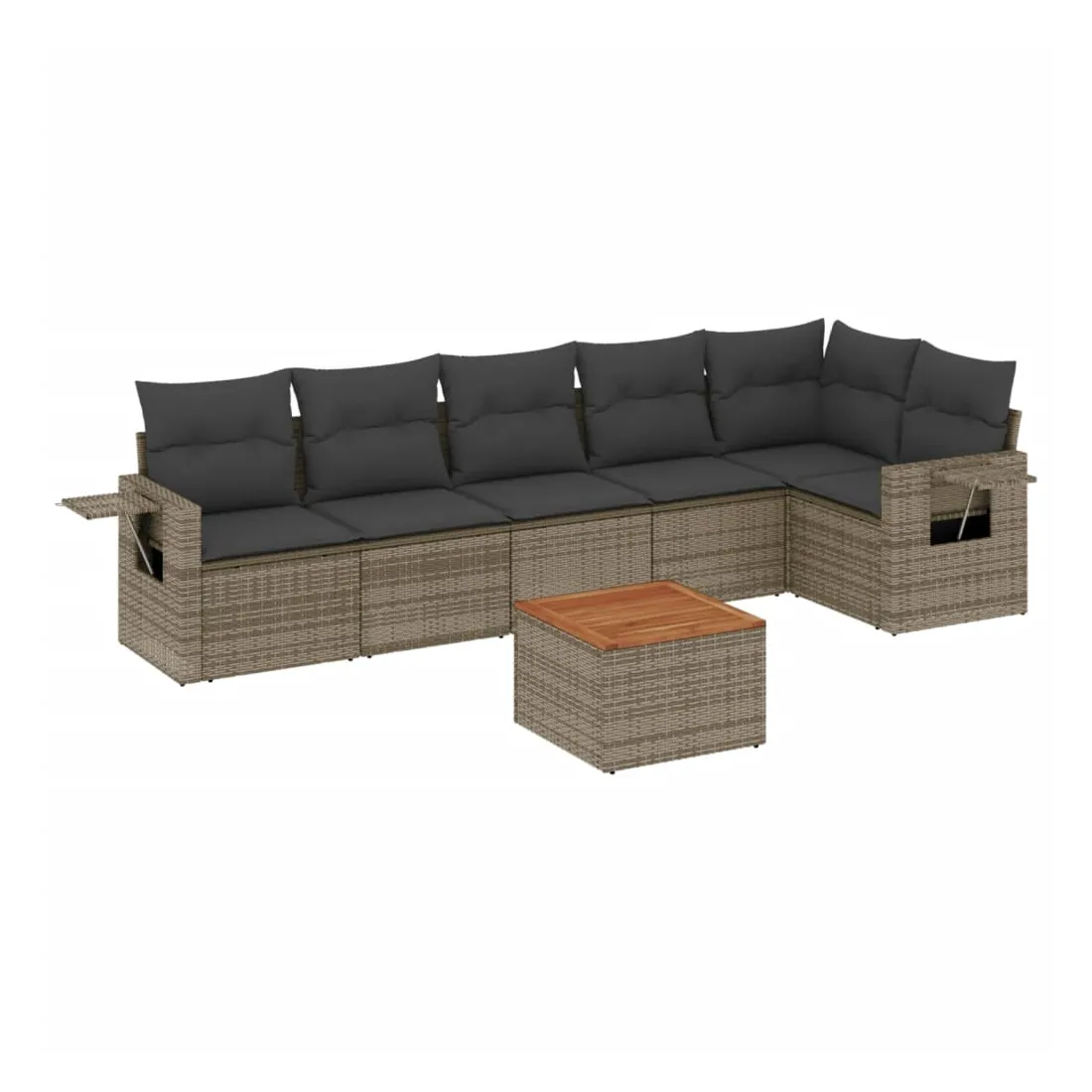 Salon de jardin avec coussins 7 pcs gris résine tressée