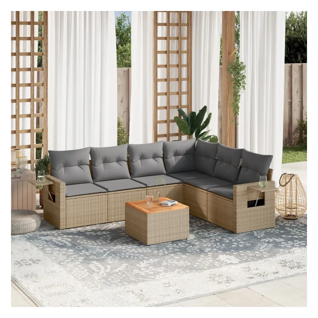 Salon de jardin avec coussins 7 pcs beige résine tressée