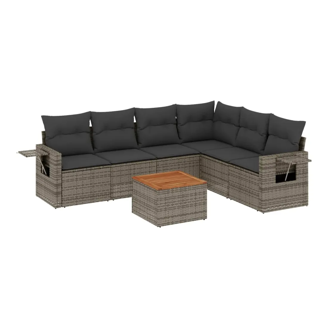 Cet ensemble de canapés de jardin est le complément parfait de votre arrière-cour, terrasse ou patio, offrant un espace confortable et accueillant pour discuter avec la famille et les amis ou simplement se détendre et profiter de l'extérieur. Matériau durable : la résine tressée, également connue sous le nom de poly rotin, est un matériau synthétique solide et nécessitant peu d'entretien qui ressemble au rotin naturel. Il est léger, facile à nettoyer et couramment utilisé pour les meubles d'extérieur en raison de sa durabilité et de ses propriétés de résistance aux intempéries.Table d'appoint pratique : ce mobilier d'extérieur comprend une table d'appoint pliable avec un ressort à gaz sur les accoudoirs, offrant un endroit pratique pour garder vos essentiels à portée de main.Dessus stable et facile à nettoyer : cette table de jardin a un dessus en bois d'acacia robuste, durable et facile à nettoyer avec un chiffon humide.Housse amovible et lavable : ces coussins de siège sont dotés de housses amovibles pour un lavage et un entretien faciles.Conception modulaire : cet ensemble de meubles d'extérieur a une conception modulaire, ce qui le rend complètement flexible et facile à déplacer, afin que vous puissiez créer un agencement de meubles d'extérieur personnalisé. Bon à savoir :Pour que vos meubles d'extérieur restent beaux, nous vous recommandons de les protéger avec une housse imperméable.