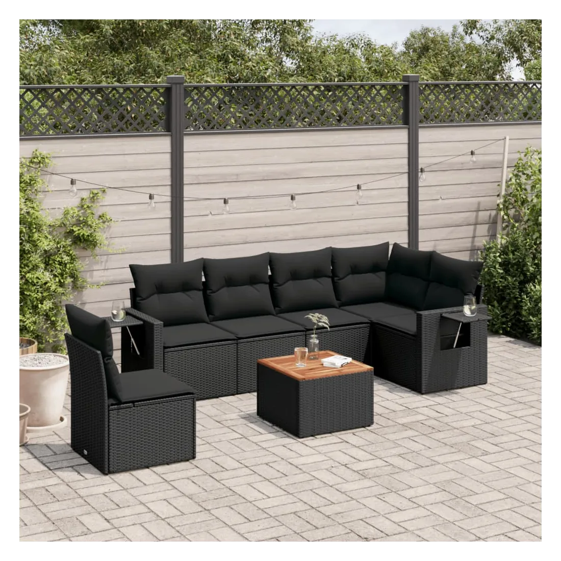 Cet ensemble de canapés de jardin est le complément parfait de votre arrière-cour, terrasse ou patio, offrant un espace confortable et accueillant pour discuter avec la famille et les amis ou simplement se détendre et profiter de l'extérieur. Matériau durable : la résine tressée, également connue sous le nom de poly rotin, est un matériau synthétique solide et nécessitant peu d'entretien qui ressemble au rotin naturel. Il est léger, facile à nettoyer et couramment utilisé pour les meubles d'extérieur en raison de sa durabilité et de ses propriétés de résistance aux intempéries.Table d'appoint pratique : ce mobilier d'extérieur comprend une table d'appoint pliable avec un ressort à gaz sur les accoudoirs, offrant un endroit pratique pour garder vos essentiels à portée de main.Dessus stable et facile à nettoyer : cette table de jardin a un dessus en bois d'acacia robuste, durable et facile à nettoyer avec un chiffon humide.Housse amovible et lavable : ces coussins de siège sont dotés de housses amovibles pour un lavage et un entretien faciles.Conception modulaire : cet ensemble de meubles d'extérieur a une conception modulaire, ce qui le rend complètement flexible et facile à déplacer, afin que vous puissiez créer un agencement de meubles d'extérieur personnalisé. Bon à savoir :Pour que vos meubles d'extérieur restent beaux, nous vous recommandons de les protéger avec une housse imperméable.