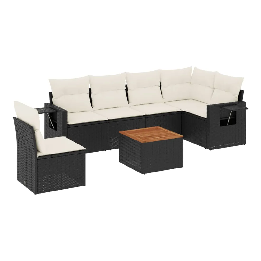 Salon de jardin 7 pcs avec coussins noir résine tressée
