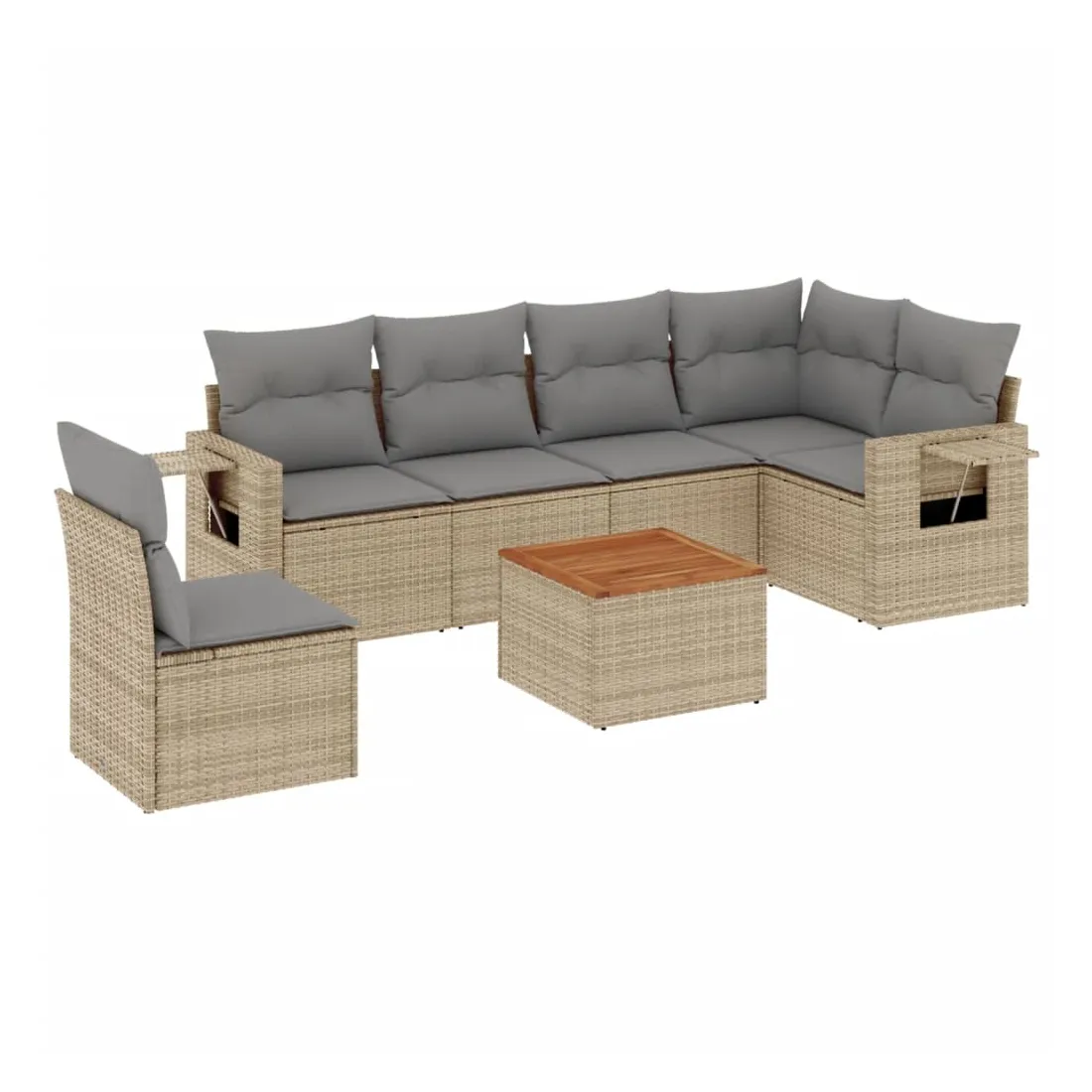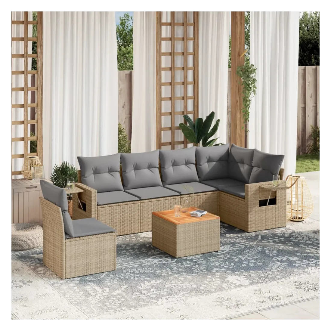 Salon de jardin avec coussins 7 pcs beige résine tressée
