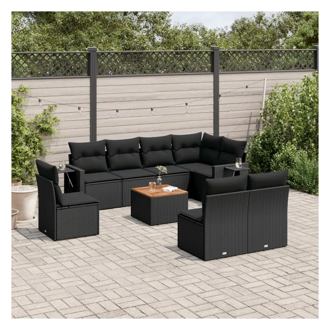 Cet ensemble de canapés de jardin est le complément parfait de votre arrière-cour, terrasse ou patio, offrant un espace confortable et accueillant pour discuter avec la famille et les amis ou simplement se détendre et profiter de l'extérieur. Matériau durable : la résine tressée, également connue sous le nom de poly rotin, est un matériau synthétique solide et nécessitant peu d'entretien qui ressemble au rotin naturel. Il est léger, facile à nettoyer et couramment utilisé pour les meubles d'extérieur en raison de sa durabilité et de ses propriétés de résistance aux intempéries.Table d'appoint pratique : ce mobilier d'extérieur comprend une table d'appoint pliable avec un ressort à gaz sur les accoudoirs, offrant un endroit pratique pour garder vos essentiels à portée de main.Dessus stable et facile à nettoyer : cette table de jardin a un dessus en bois d'acacia robuste, durable et facile à nettoyer avec un chiffon humide.Housse amovible et lavable : ces coussins de siège sont dotés de housses amovibles pour un lavage et un entretien faciles.Conception modulaire : cet ensemble de meubles d'extérieur a une conception modulaire, ce qui le rend complètement flexible et facile à déplacer, afin que vous puissiez créer un agencement de meubles d'extérieur personnalisé. Bon à savoir :Pour que vos meubles d'extérieur restent beaux, nous vous recommandons de les protéger avec une housse imperméable.