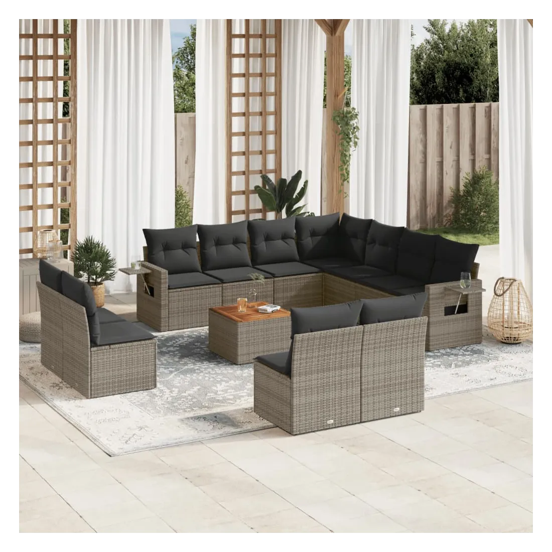 Cet ensemble de canapés de jardin est le complément parfait de votre arrière-cour, terrasse ou patio, offrant un espace confortable et accueillant pour discuter avec la famille et les amis ou simplement se détendre et profiter de l'extérieur. Matériau durable : la résine tressée, également connue sous le nom de poly rotin, est un matériau synthétique solide et nécessitant peu d'entretien qui ressemble au rotin naturel. Il est léger, facile à nettoyer et couramment utilisé pour les meubles d'extérieur en raison de sa durabilité et de ses propriétés de résistance aux intempéries.Table d'appoint pratique : ce mobilier d'extérieur comprend une table d'appoint pliable avec un ressort à gaz sur les accoudoirs, offrant un endroit pratique pour garder vos essentiels à portée de main.Dessus stable et facile à nettoyer : cette table de jardin a un dessus en bois d'acacia robuste, durable et facile à nettoyer avec un chiffon humide.Housse amovible et lavable : ces coussins de siège sont dotés de housses amovibles pour un lavage et un entretien faciles.Conception modulaire : cet ensemble de meubles d'extérieur a une conception modulaire, ce qui le rend complètement flexible et facile à déplacer, afin que vous puissiez créer un agencement de meubles d'extérieur personnalisé. Bon à savoir :Pour que vos meubles d'extérieur restent beaux, nous vous recommandons de les protéger avec une housse imperméable.