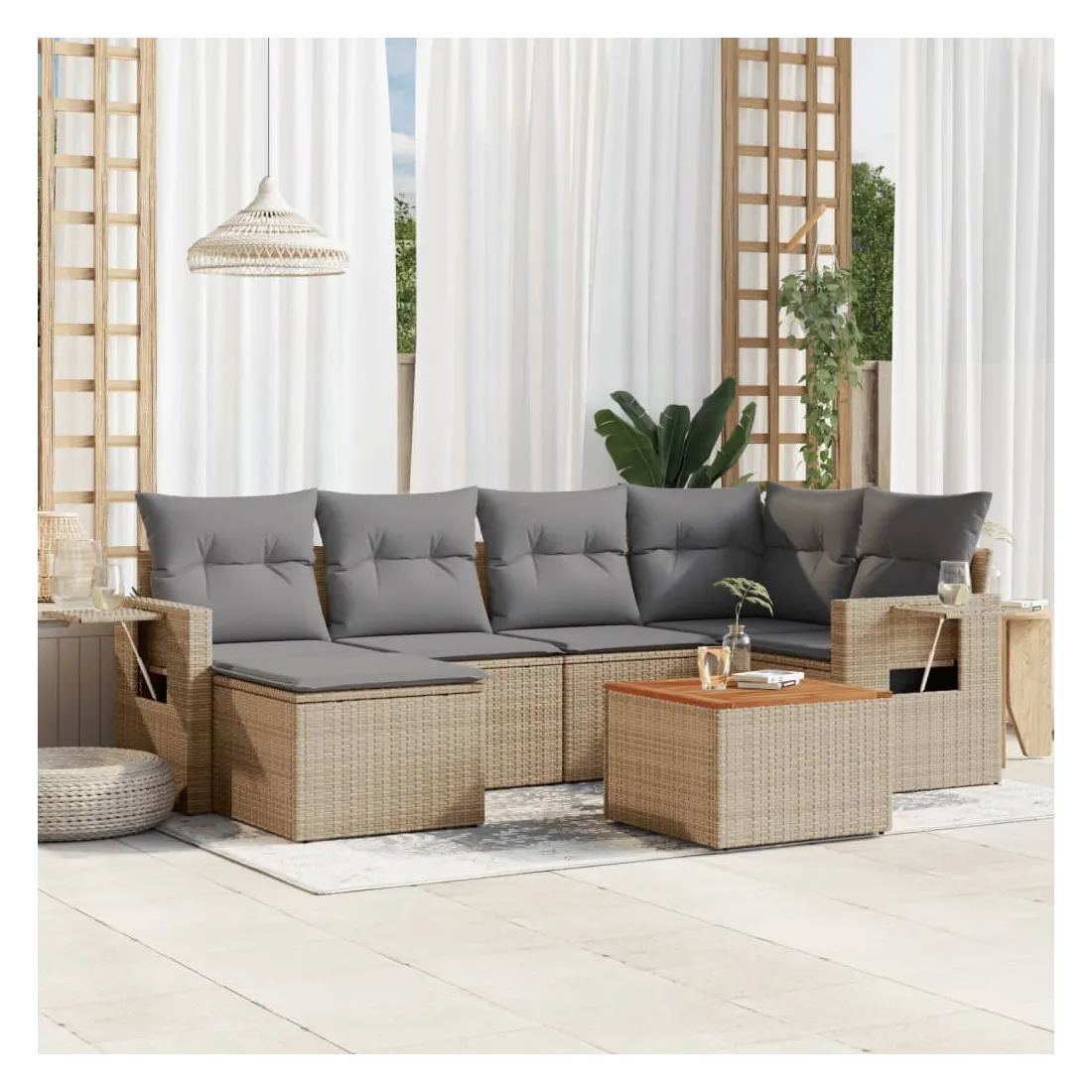 Cet ensemble de canapés de jardin est le complément parfait de votre arrière-cour, terrasse ou patio, offrant un espace confortable et accueillant pour discuter avec la famille et les amis ou simplement se détendre et profiter de l'extérieur. Matériau durable : la résine tressée, également connue sous le nom de poly rotin, est un matériau synthétique solide et nécessitant peu d'entretien qui ressemble au rotin naturel. Il est léger, facile à nettoyer et couramment utilisé pour les meubles d'extérieur en raison de sa durabilité et de ses propriétés de résistance aux intempéries.Table d'appoint pratique : ce mobilier d'extérieur comprend une table d'appoint pliable avec un ressort à gaz sur les accoudoirs, offrant un endroit pratique pour garder vos essentiels à portée de main.Dessus stable et facile à nettoyer : cette table de jardin a un dessus en bois d'acacia robuste, durable et facile à nettoyer avec un chiffon humide.Housse amovible et lavable : ces coussins de siège sont dotés de housses amovibles pour un lavage et un entretien faciles.Conception modulaire : cet ensemble de meubles d'extérieur a une conception modulaire, ce qui le rend complètement flexible et facile à déplacer, afin que vous puissiez créer un agencement de meubles d'extérieur personnalisé. Bon à savoir :Pour que vos meubles d'extérieur restent beaux, nous vous recommandons de les protéger avec une housse imperméable.