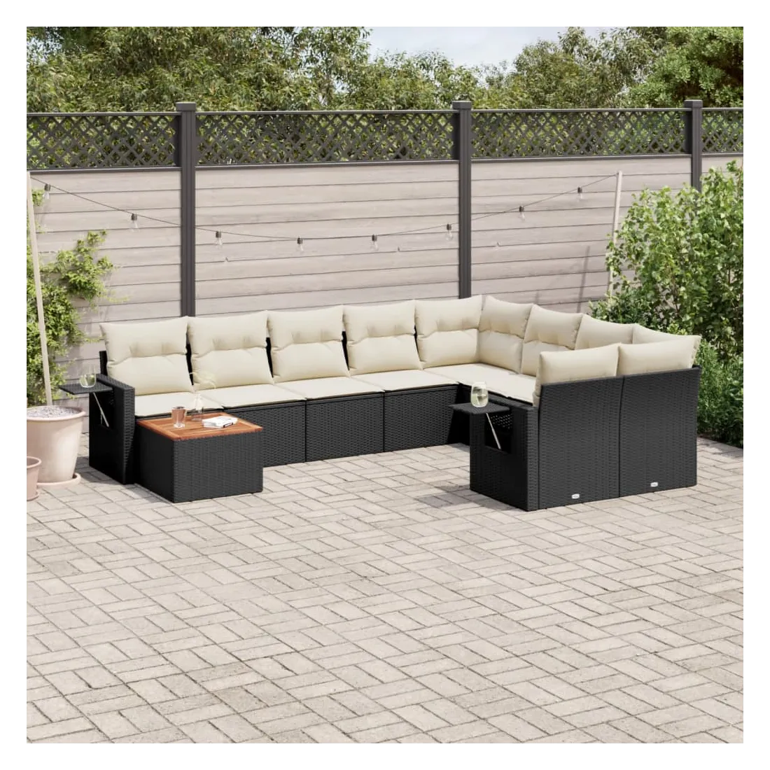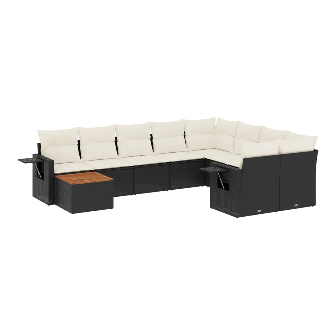 Salon de jardin 10 pcs avec coussins noir résine tressée