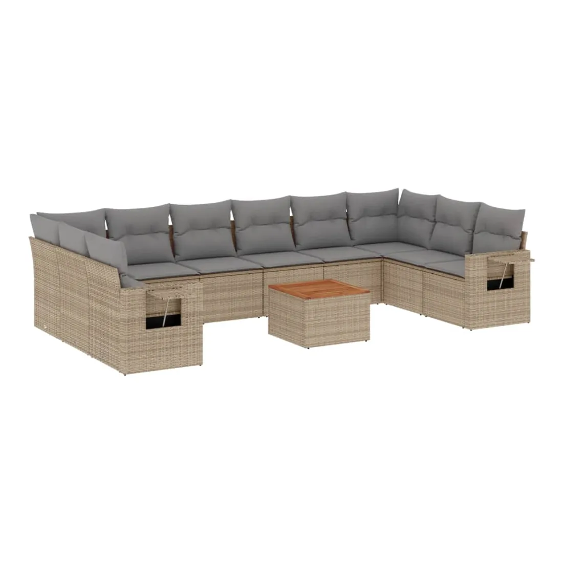 Cet ensemble de canapés de jardin est le complément parfait de votre arrière-cour, terrasse ou patio, offrant un espace confortable et accueillant pour discuter avec la famille et les amis ou simplement se détendre et profiter de l'extérieur. Matériau durable : la résine tressée, également connue sous le nom de poly rotin, est un matériau synthétique solide et nécessitant peu d'entretien qui ressemble au rotin naturel. Il est léger, facile à nettoyer et couramment utilisé pour les meubles d'extérieur en raison de sa durabilité et de ses propriétés de résistance aux intempéries.Table d'appoint pratique : ce mobilier d'extérieur comprend une table d'appoint pliable avec un ressort à gaz sur les accoudoirs, offrant un endroit pratique pour garder vos essentiels à portée de main.Dessus stable et facile à nettoyer : cette table de jardin a un dessus en bois d'acacia robuste, durable et facile à nettoyer avec un chiffon humide.Housse amovible et lavable : ces coussins de siège sont dotés de housses amovibles pour un lavage et un entretien faciles.Conception modulaire : cet ensemble de meubles d'extérieur a une conception modulaire, ce qui le rend complètement flexible et facile à déplacer, afin que vous puissiez créer un agencement de meubles d'extérieur personnalisé. Bon à savoir :Pour que vos meubles d'extérieur restent beaux, nous vous recommandons de les protéger avec une housse imperméable.