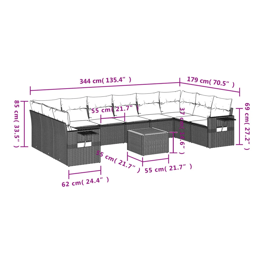 • Dimensions : 55 x 55 x 37 cm (L x l x H)