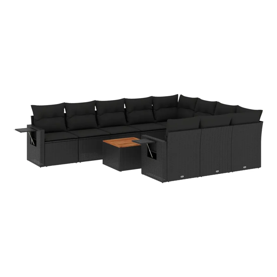 Salon de jardin 11 pcs avec coussins noir résine tressée