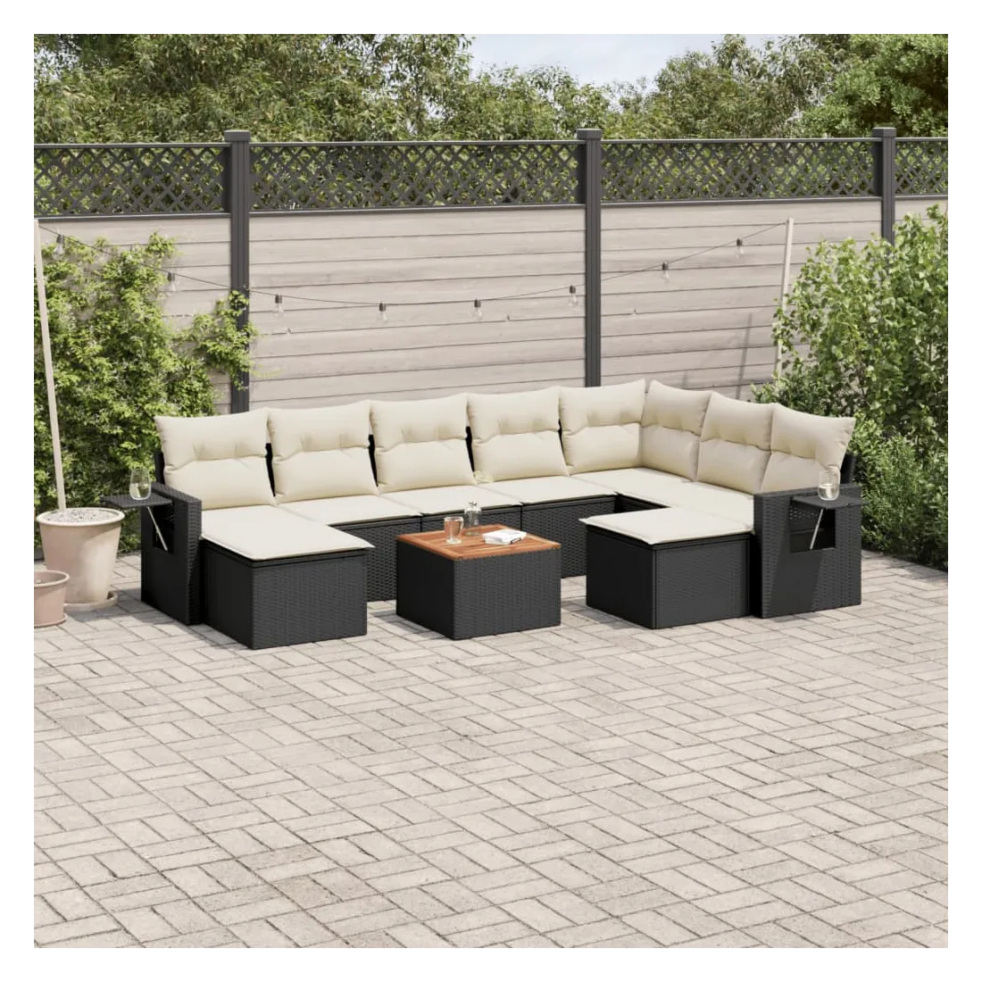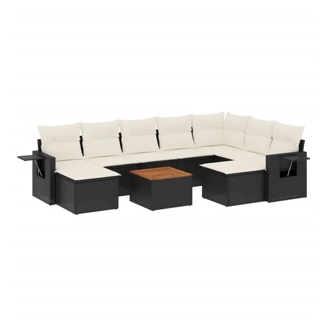 Cet ensemble de canapés de jardin est le complément parfait de votre arrière-cour, terrasse ou patio, offrant un espace confortable et accueillant pour discuter avec la famille et les amis ou simplement se détendre et profiter de l'extérieur. Matériau durable : la résine tressée, également connue sous le nom de poly rotin, est un matériau synthétique solide et nécessitant peu d'entretien qui ressemble au rotin naturel. Il est léger, facile à nettoyer et couramment utilisé pour les meubles d'extérieur en raison de sa durabilité et de ses propriétés de résistance aux intempéries.Table d'appoint pratique : ce mobilier d'extérieur comprend une table d'appoint pliable avec un ressort à gaz sur les accoudoirs, offrant un endroit pratique pour garder vos essentiels à portée de main.Dessus stable et facile à nettoyer : cette table de jardin a un dessus en bois d'acacia robuste, durable et facile à nettoyer avec un chiffon humide.Housse amovible et lavable : ces coussins de siège sont dotés de housses amovibles pour un lavage et un entretien faciles.Conception modulaire : cet ensemble de meubles d'extérieur a une conception modulaire, ce qui le rend complètement flexible et facile à déplacer, afin que vous puissiez créer un agencement de meubles d'extérieur personnalisé. Bon à savoir :Pour que vos meubles d'extérieur restent beaux, nous vous recommandons de les protéger avec une housse imperméable.