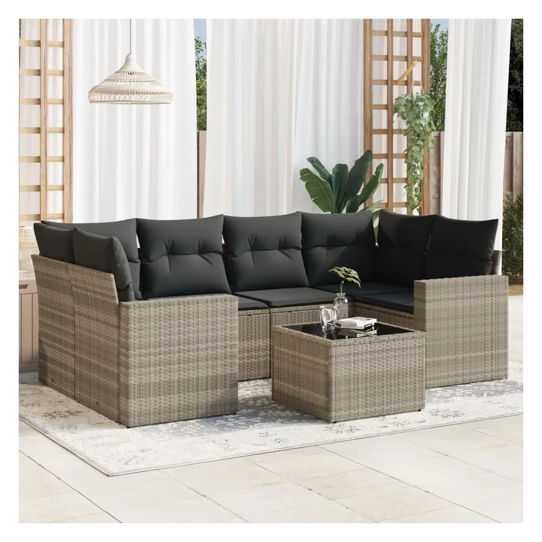Cet ensemble de canapés de jardin est le complément parfait de votre arrière-cour, terrasse ou patio, offrant un espace confortable et accueillant pour discuter avec la famille et les amis ou simplement se détendre et profiter de l'extérieur. Matériau durable : la résine tressée, également connue sous le nom de poly rotin, est un matériau synthétique solide et nécessitant peu d'entretien qui ressemble au rotin naturel. Il est léger, facile à nettoyer et couramment utilisé pour les meubles d'extérieur en raison de sa durabilité et de ses propriétés de résistance aux intempéries.Fonction de rangement avec sac résistant à l'eau : chaque siège de jardin dispose d'un espace de rangement sous l'assise, complété par un sac résistant à l'eau pour ranger les coussins, les jouets et d'autres objets. Les sacs intérieurs sont dotés d'un couvercle et peuvent être solidement fixés aux sièges à l'aide de bandes auto-agrippantes pour plus de stabilité.Dessus en verre : le dessus de la table d'extérieur est fabriqué en verre trempé solide et durable, ce qui le rend facile à nettoyer avec un chiffon humide et ajoute une touche d'élégance à votre espace extérieur.Housse amovible et lavable : ces coussins de siège sont dotés de housses amovibles pour un lavage et un entretien faciles.Conception modulaire : cet ensemble de meubles d'extérieur a une conception modulaire, ce qui le rend complètement flexible et facile à déplacer, afin que vous puissiez créer un agencement de meubles d'extérieur personnalisé. Bon à savoir :Pour que vos meubles d'extérieur restent beaux, nous vous recommandons de les protéger avec une housse imperméable.