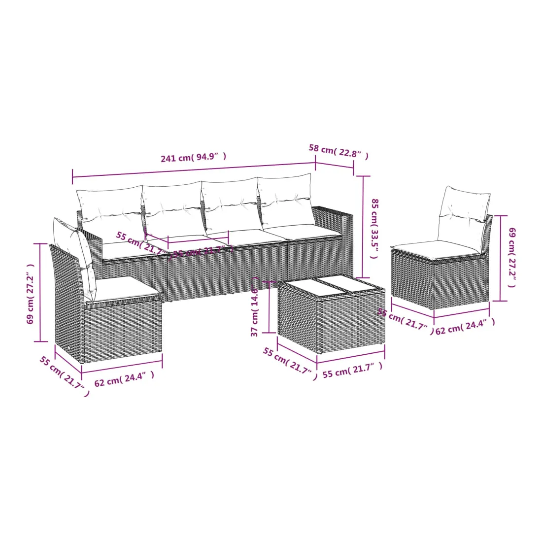 - Dimensions du coussin de siège : 55 x 55 x 3 cm (l x P x é)