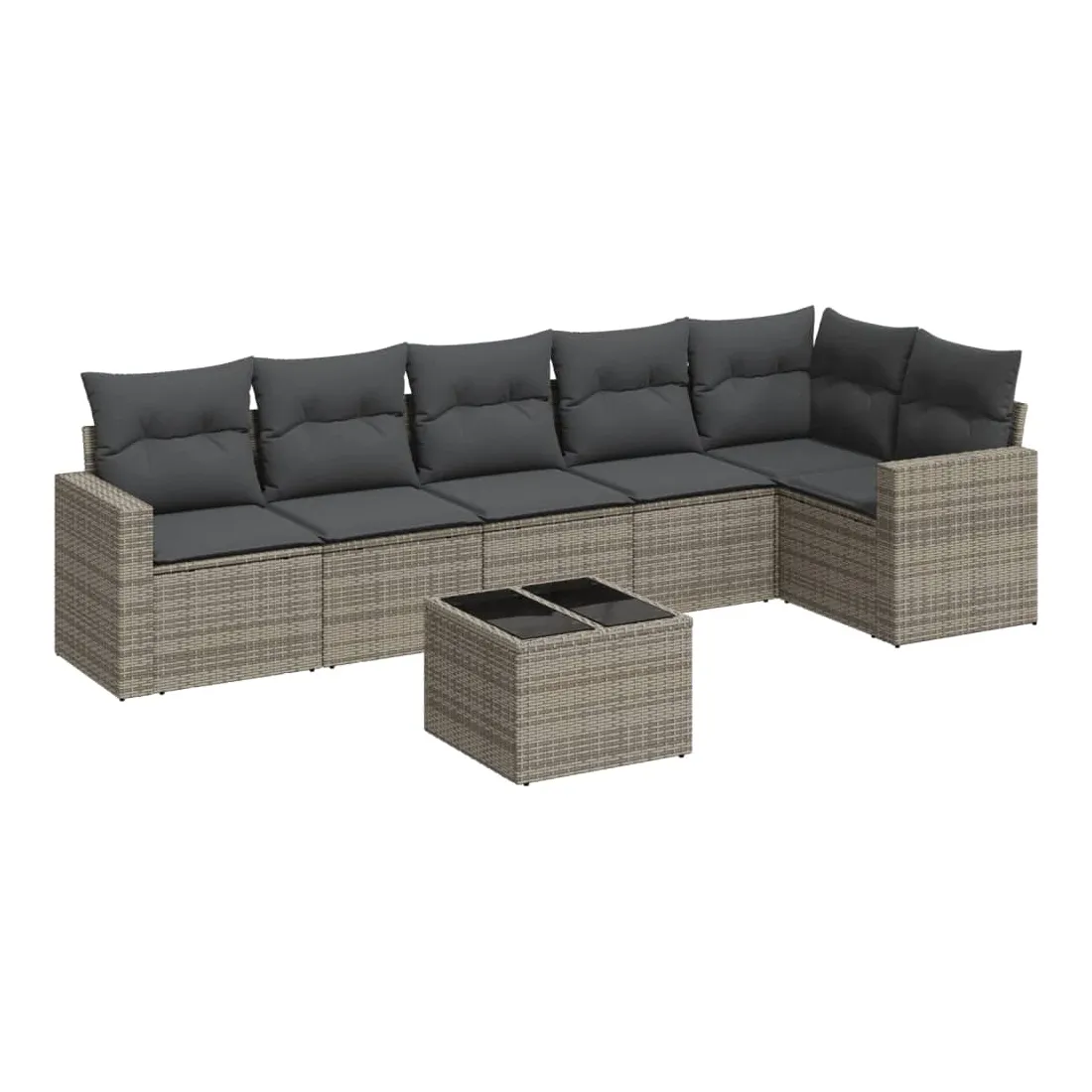 Salon de jardin avec coussins 7 pcs gris résine tressée