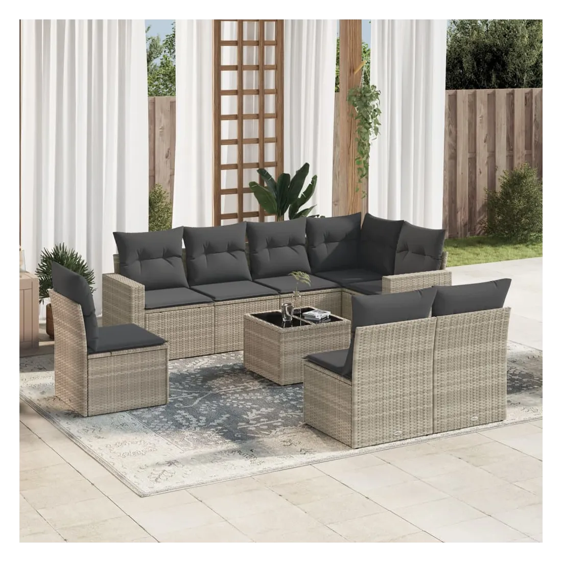 Cet ensemble de canapés de jardin est le complément parfait de votre arrière-cour, terrasse ou patio, offrant un espace confortable et accueillant pour discuter avec la famille et les amis ou simplement se détendre et profiter de l'extérieur. Matériau durable : la résine tressée, également connue sous le nom de poly rotin, est un matériau synthétique solide et nécessitant peu d'entretien qui ressemble au rotin naturel. Il est léger, facile à nettoyer et couramment utilisé pour les meubles d'extérieur en raison de sa durabilité et de ses propriétés de résistance aux intempéries.Fonction de rangement avec sac résistant à l'eau : chaque siège de jardin dispose d'un espace de rangement sous l'assise, complété par un sac résistant à l'eau pour ranger les coussins, les jouets et d'autres objets. Les sacs intérieurs sont dotés d'un couvercle et peuvent être solidement fixés aux sièges à l'aide de bandes auto-agrippantes pour plus de stabilité.Dessus en verre : le dessus de la table d'extérieur est fabriqué en verre trempé solide et durable, ce qui le rend facile à nettoyer avec un chiffon humide et ajoute une touche d'élégance à votre espace extérieur.Housse amovible et lavable : ces coussins de siège sont dotés de housses amovibles pour un lavage et un entretien faciles.Conception modulaire : cet ensemble de meubles d'extérieur a une conception modulaire, ce qui le rend complètement flexible et facile à déplacer, afin que vous puissiez créer un agencement de meubles d'extérieur personnalisé. Bon à savoir :Pour que vos meubles d'extérieur restent beaux, nous vous recommandons de les protéger avec une housse imperméable.