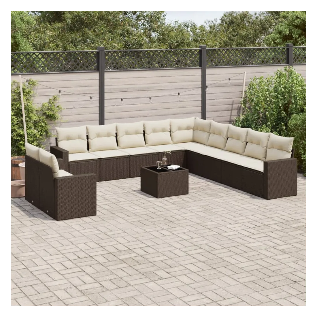 Cet ensemble de canapés de jardin est le complément parfait de votre arrière-cour, terrasse ou patio, offrant un espace confortable et accueillant pour discuter avec la famille et les amis ou simplement se détendre et profiter de l'extérieur. Matériau durable : la résine tressée, également connue sous le nom de poly rotin, est un matériau synthétique solide et nécessitant peu d'entretien qui ressemble au rotin naturel. Il est léger, facile à nettoyer et couramment utilisé pour les meubles d'extérieur en raison de sa durabilité et de ses propriétés de résistance aux intempéries.Fonction de rangement avec sac résistant à l'eau : chaque siège de jardin dispose d'un espace de rangement sous l'assise, complété par un sac résistant à l'eau pour ranger les coussins, les jouets et d'autres objets. Les sacs intérieurs sont dotés d'un couvercle et peuvent être solidement fixés aux sièges à l'aide de bandes auto-agrippantes pour plus de stabilité.Dessus en verre : le dessus de la table d'extérieur est fabriqué en verre trempé solide et durable, ce qui le rend facile à nettoyer avec un chiffon humide et ajoute une touche d'élégance à votre espace extérieur.Housse amovible et lavable : ces coussins de siège sont dotés de housses amovibles pour un lavage et un entretien faciles.Conception modulaire : cet ensemble de meubles d'extérieur a une conception modulaire, ce qui le rend complètement flexible et facile à déplacer, afin que vous puissiez créer un agencement de meubles d'extérieur personnalisé. Bon à savoir :Pour que vos meubles d'extérieur restent beaux, nous vous recommandons de les protéger avec une housse imperméable.