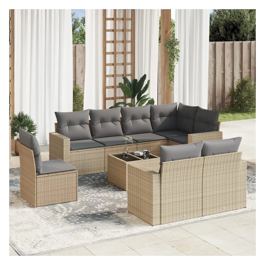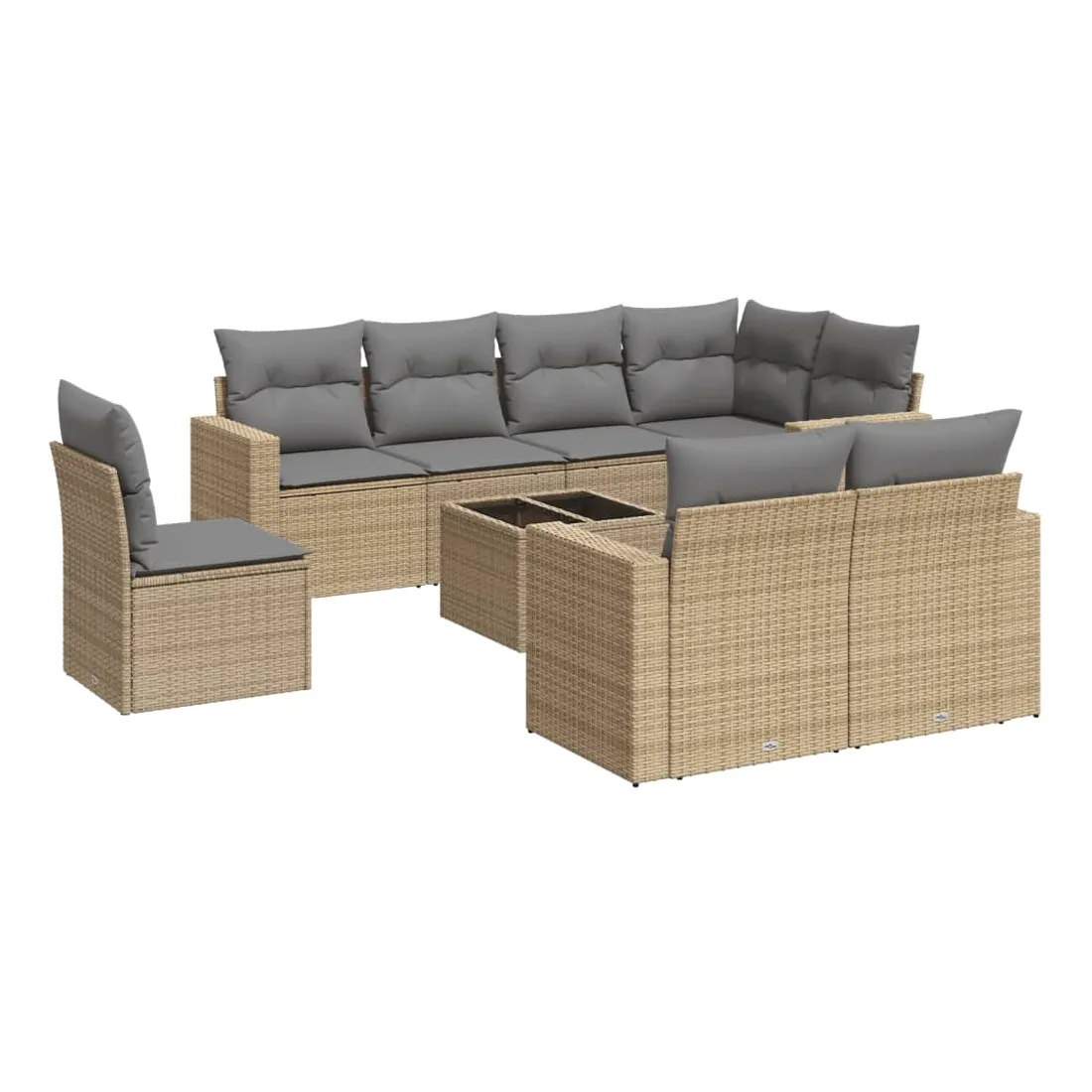 Salon de jardin avec coussins 9 pcs beige résine tressée