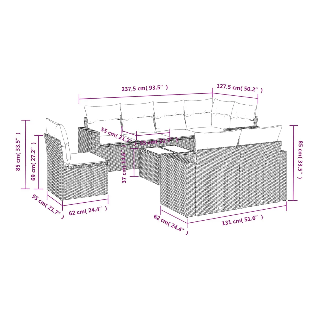 • Dimensions : 55 x 55 x 37 cm (L x l x H)