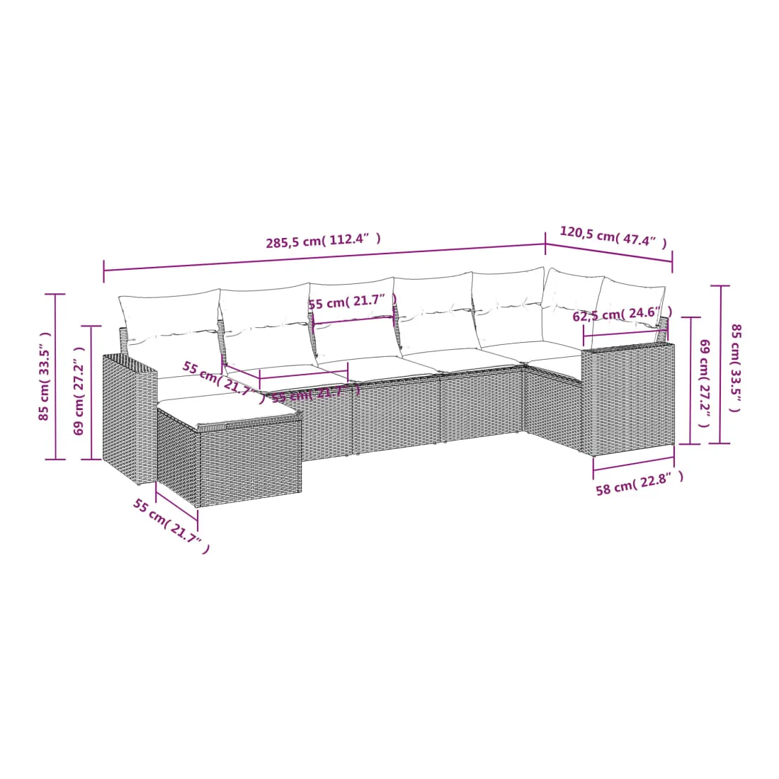 - Dimensions du coussin de dossier : 55 x 45 x 13 cm (L x l x é)