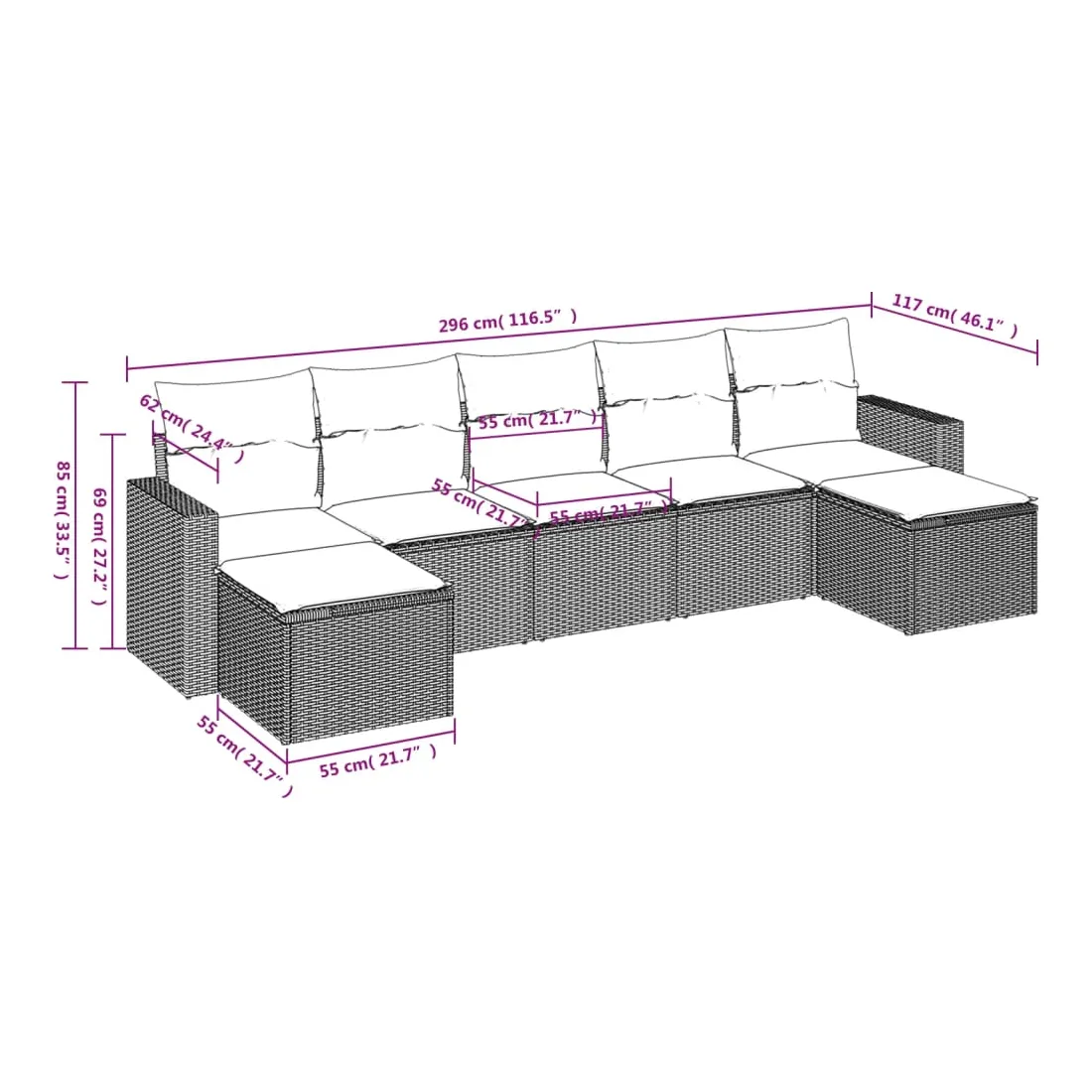 - Dimensions du coussin de dossier : 55 x 45 x 13 cm (L x l x é)