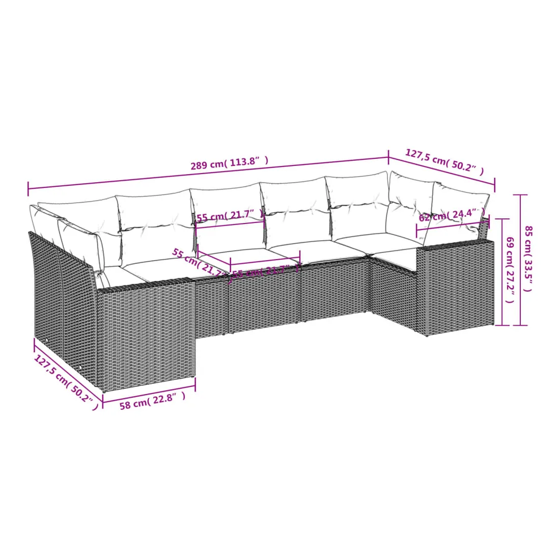 - 7 x coussin de siège avec housse amovible et lavable